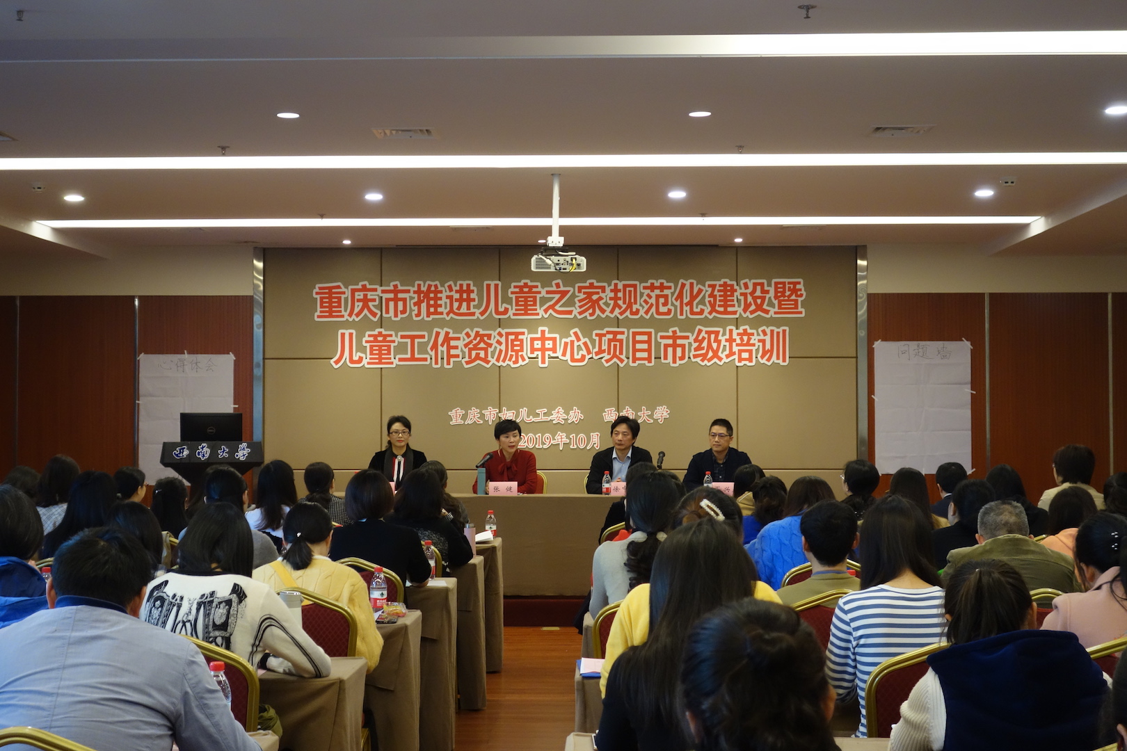 10月29日-31日,重庆市推进儿童之家规范化建设暨重庆市儿童工作资源中心项目培训在学校举行。该培训由重庆市人民政府妇女儿童工作委员会和Beat365中文官方网站主办,重庆市儿童工作资源中心承办。重庆市妇联党组成员、副主席张健出席开班式并讲话。