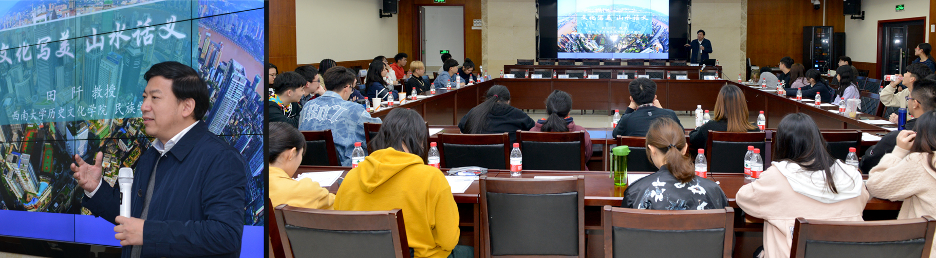 历史文化学院田阡教授应邀作题为“文化写美,山水话义”的国情知识讲座。介绍了重庆巴蜀文化、移民文化、革命文化、抗战文化等历史文化的形成,分享了对当代重庆生活和文化的理解和感悟。围绕“行千里,致广大”,用以小见大的方式阐释了重庆文化、港澳台文化的共通性。勉励同学们秉持“美人之美、美美与共”的理念,在两岸四地文化交流中发挥积极作用。