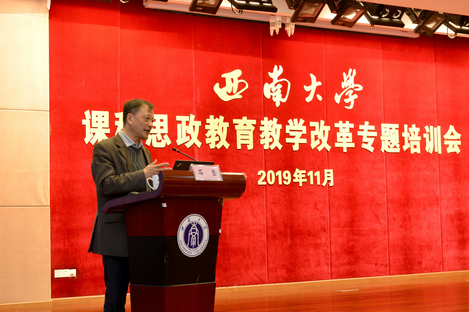 此次培训会上石坚教授的报告内容思想深邃,理念超前,深入浅出,发人深省,既有深厚的理论指导,又有多年的实践印证,对学校推进课程思政教育教学改革和一流本科建设,提高人才培养质量等各项工作具有积极指导作用。