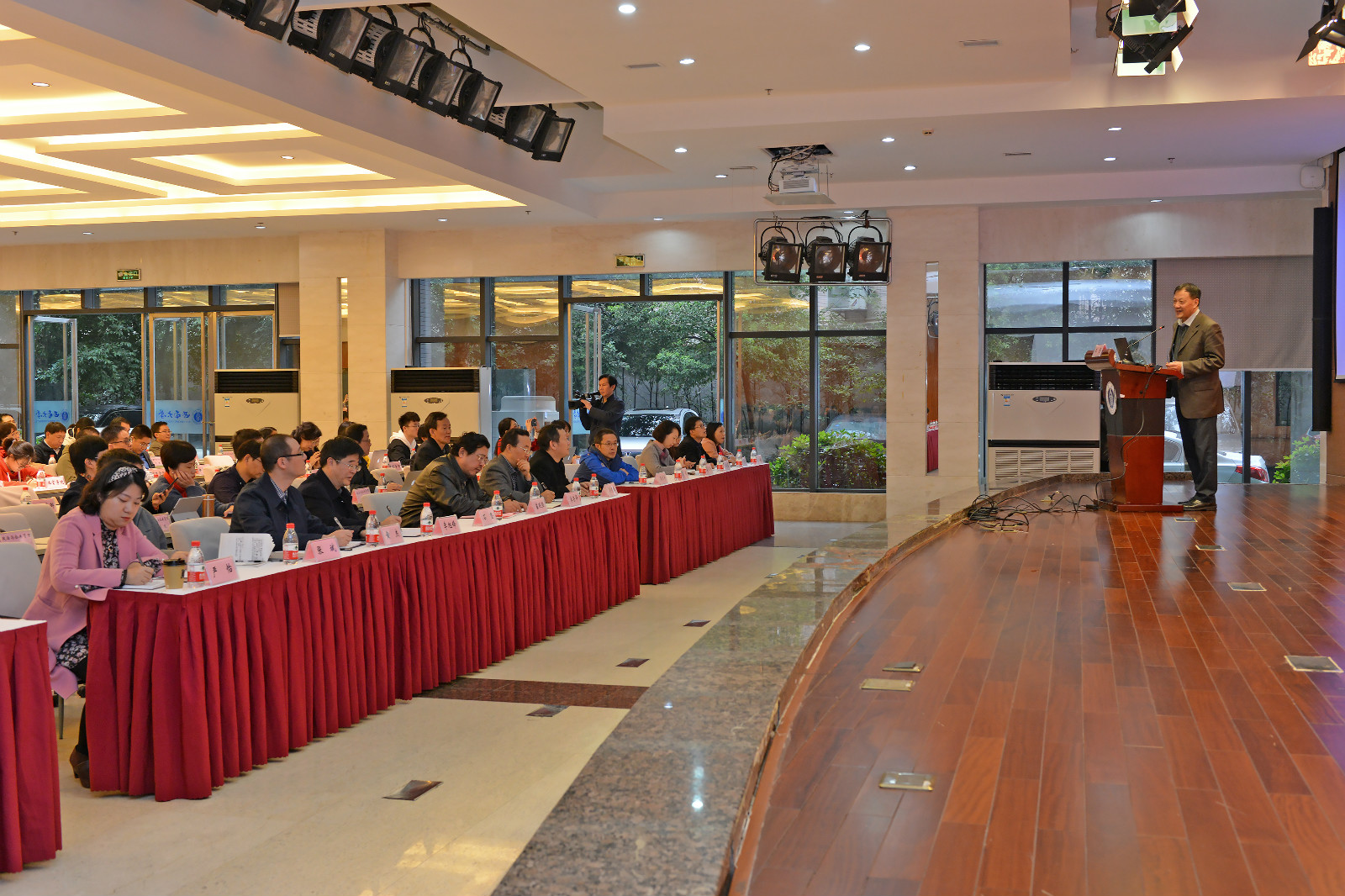 11月12日下午,Beat365中文官方网站课程思政教育教学改革专题培训会在国际学院报告厅举行。党委书记李旭锋出席会议。副校长崔延强主持会议。党委办公室、校长办公室、党委宣传部、团委、教务处、党委研究生工作部 研究生院、党委学生工作部 学生工作处、教师教育学院、创新创业学院等单位负责人,各教学单位分管本科教学的副院(部)长、专业负责人、教研室主任、专业核心课程项目负责人、课程思政项目负责人等近200人参加培训。