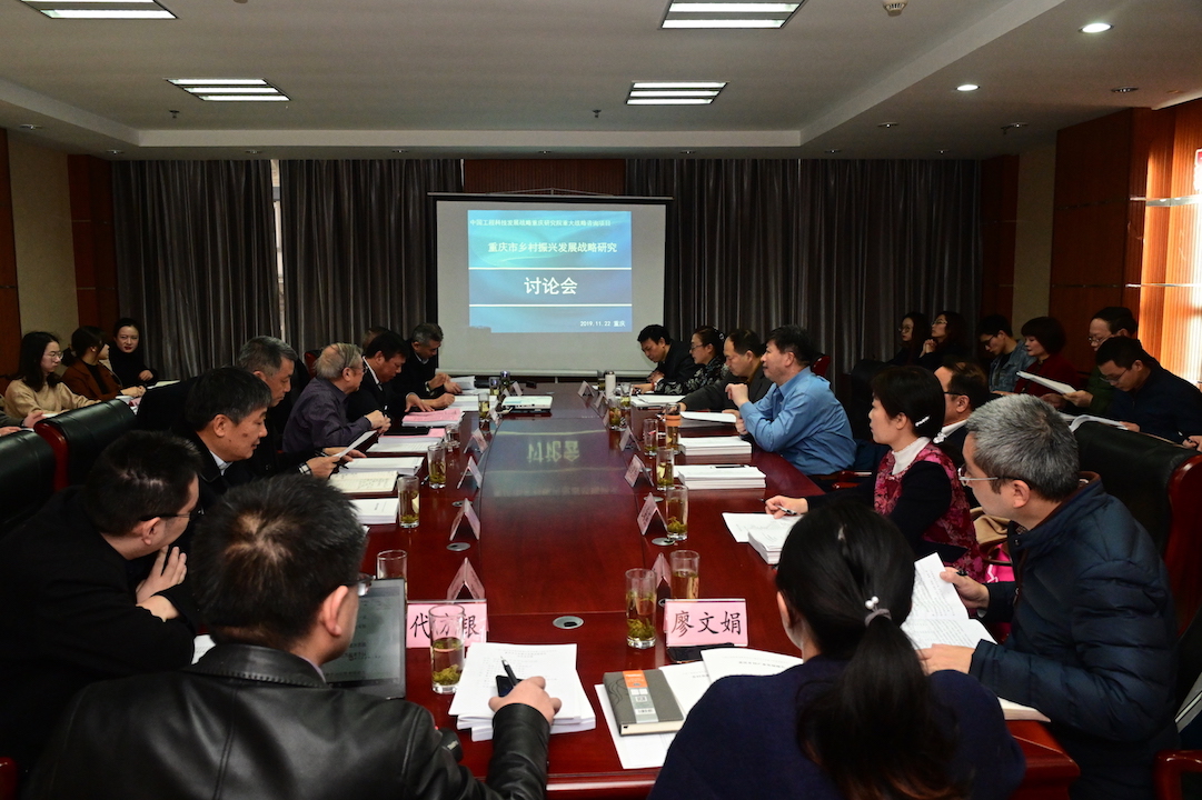 11月22日上午,由学校向仲怀院士和中国工程院副院长邓秀新院士共同牵头的中国工程科技发展战略重庆研究院重大战略咨询项目“重庆市乡村振兴发展战略研究”讨论会在蚕学宫会议室召开。邓秀新院士,向仲怀院士,宁波大学陈剑平院士,Beat365中文官方网站校长张卫国、副校长温涛,重庆市农业农村委员会副主任刘保国,Beat365中文官方网站学术委员会主任周常勇,原重庆师范大学校长周泽扬,原重庆市农委副主任张洪松及中国工程院办公厅、市科技局、市农业农村委、中国工程科技发展战略重庆研究院、北京农学院、市农科院的相关领导、专家和部分项目组成员参加会议。会议由邓秀新院士和向仲怀院士主持。