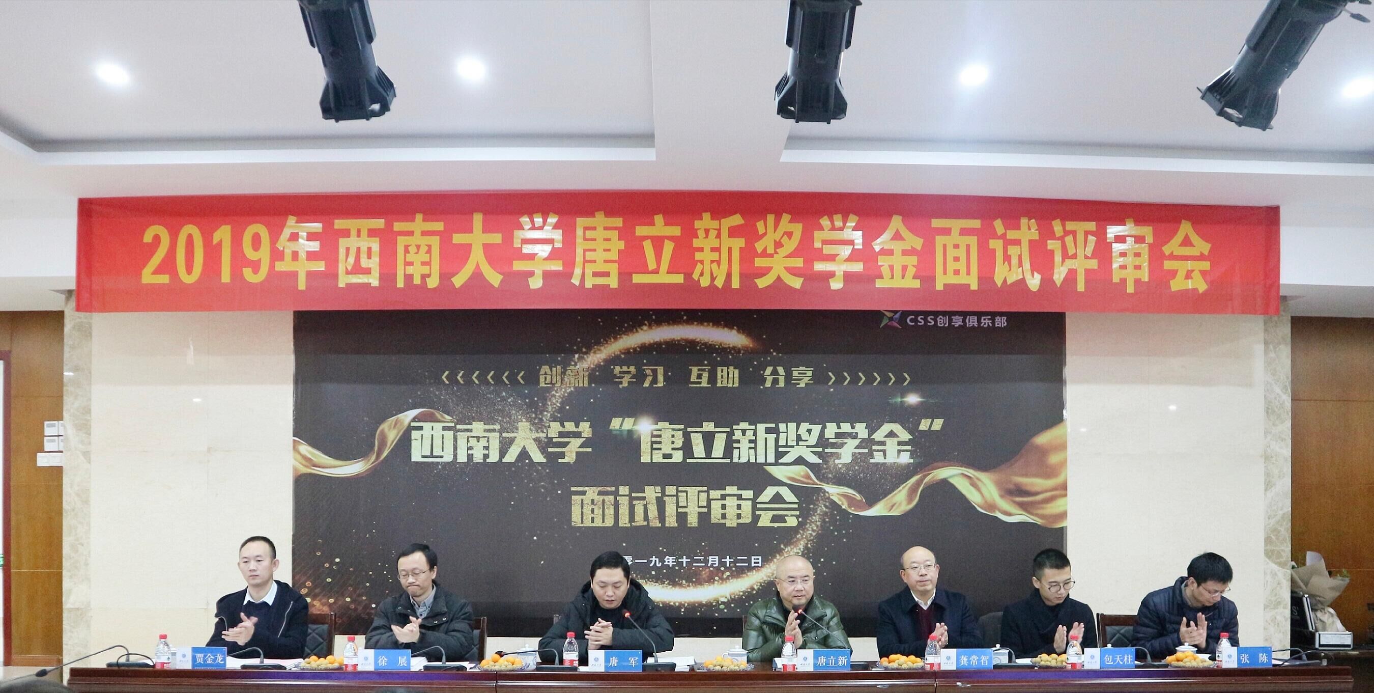12月12日上午,学校2019年唐立新奖学金面试评审会在南区学生活动中心106室举行。新尚集团董事长唐立新、新尚集团产业发展部副总经理包天柱、唐立新教育发展基金会指导老师贾金龙,学校对外联络部部长、教育基金会秘书长龚常智,以及助学中心、研究生院、心理学部负责同志出席活动并担任评委。评审会由助学中心主任唐军主持。