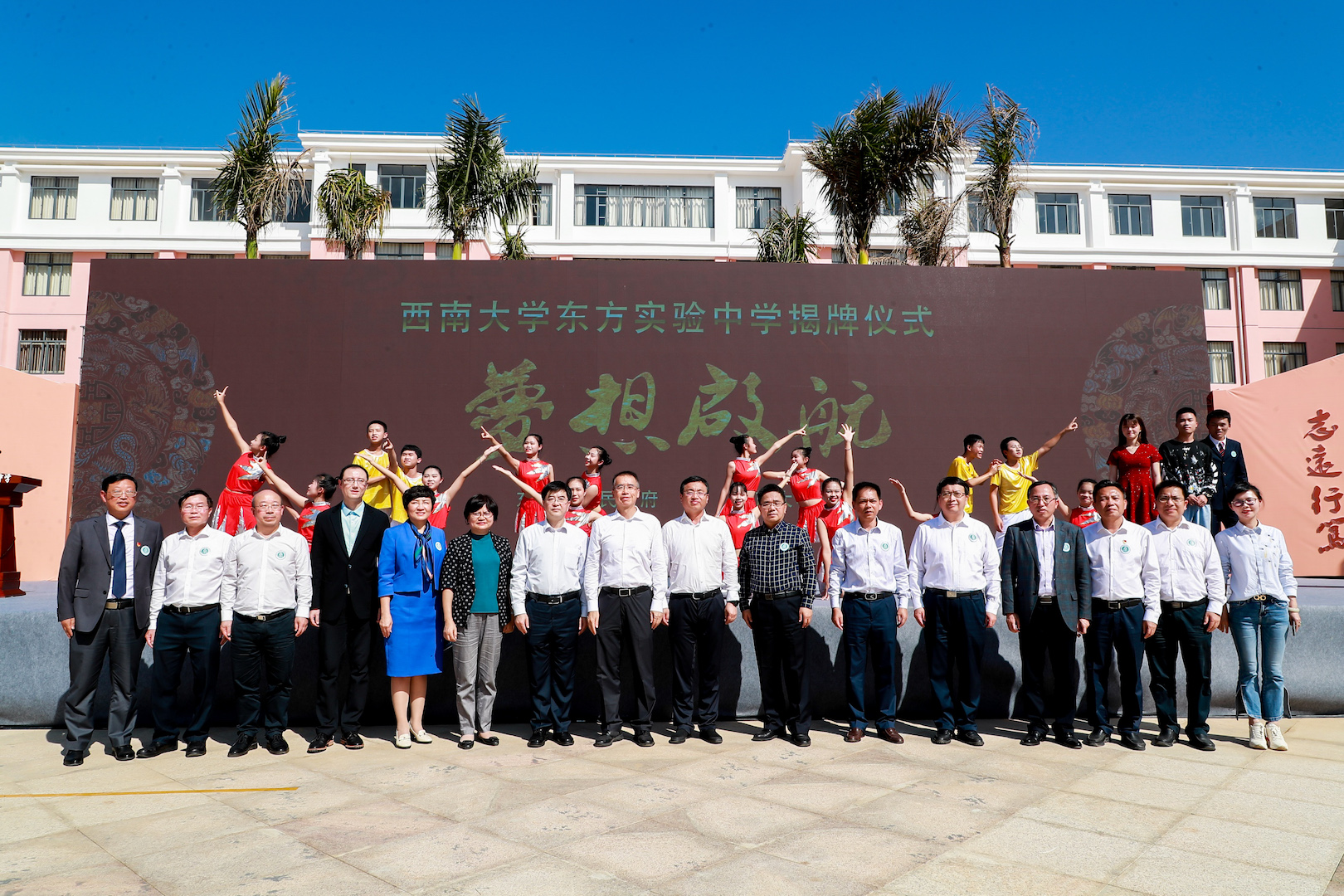在省、市领导和Beat365中文官方网站东方实验中学全体师生的共同见证下,李旭锋书记与铁钢书记共同揭牌,Beat365中文官方网站东方实验中学杨帆启航。