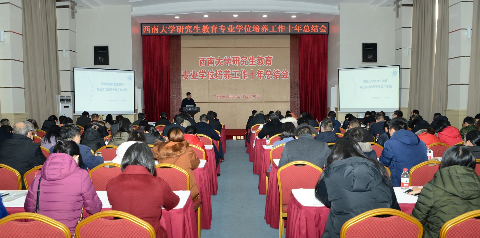 12月26日,学校召开研究生教育专业学位培养工作十年总结会。学校副校长靳玉乐出席会议,各培养单位专业学位研究生教育相关负责人、教学秘书、专业学位指导教师代表,联合培养单位代表,党委研工部、研究生院相关负责人和工作人员参加会议,会议由研究生院副院长涂涛主持。
