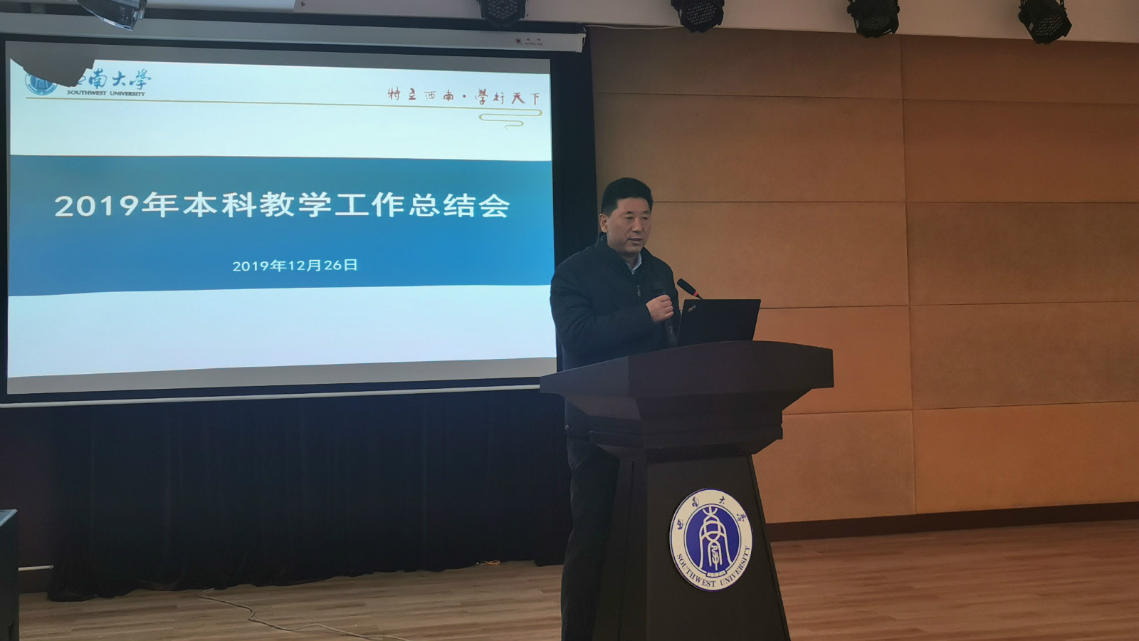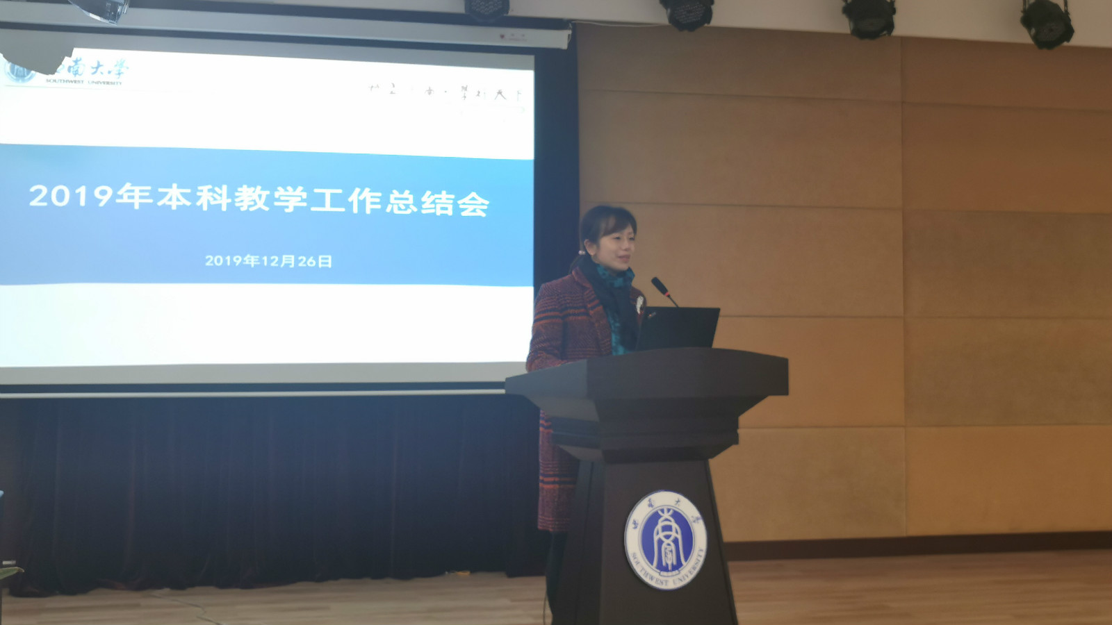 12月26日下午,学校在师元讲堂召开2019年本科教学工作总结会。重庆市教委高教处副处长吴岚(主持工作)、学校副校长靳玉乐出席会议并讲话。