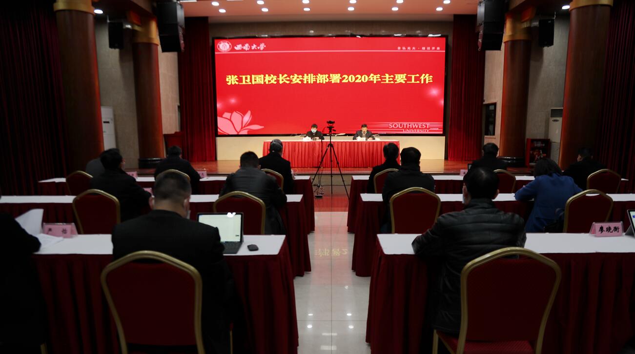 张卫国校长围绕两大部分具体内容部署2020年重点工作:一是把党的政治建设摆在首位,加强党对各项工作的全面领导,制订落实学校《关于加强党的政治建设的具体措施》,巩固深化“不忘初心、牢记使命”主题教育成果,完善加强党的全面领导的运行机制,坚决打赢疫情防控阻击战,加强思想理论和宣传文化建设,抓好意识形态和安全稳定工作,加强干部和人才队伍建设,推动基层党建提质增效,加强师德师风建设,大力推进新学工建设,持之以恒正风肃纪,做好统战、群团与离退休工作。二是聚焦“双一流”建设,统筹推进学校事业发展,要推进学校治理体系和治理能力现代化,深化评价制度体系改革,推进一流本科教育建设计划,推进研究生质量提升计划,全力推进一流学科建设,着力锻造高水平人才队伍,稳步提高科学研究水平,增强社会服务整体功能,提高对外开放办学水平,强化办学条件保障。