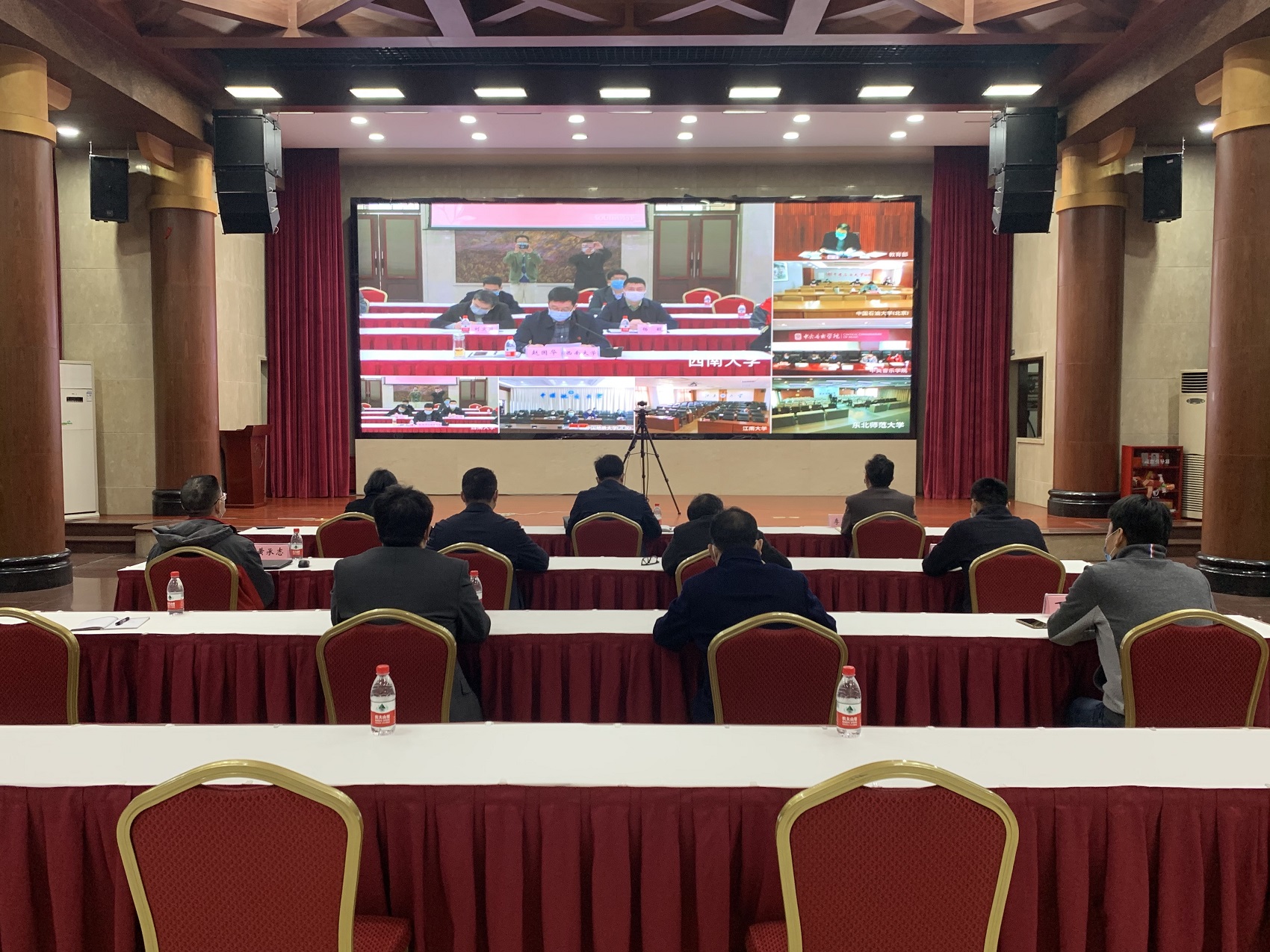 为深入学习贯彻习近平总书记在决战决胜脱贫攻坚座谈会上的重要讲话精神,贯彻落实中央脱贫攻坚专项巡视“回头看”反馈意见,推动新增20所直属高校强化决战决胜意识,压实定点扶贫责任,以更大力度完成脱贫攻坚任务,教育部近日组织召开了新增20所直属高校定点扶贫工作推进视频会议,会议由教育部副部长孙尧主持。学校副校长赵国华以及相关单位负责人参加视频会议。