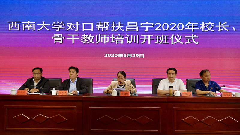 5月29日,学校举办百名校长及骨干教师培训班开班仪式在昌宁举行,为对口帮扶昌宁再添新动力。昌宁县委常委、副县长杨胡辉,学校选派到昌宁的挂职副县长谭志友,学校基础教育集团负责人邹顺康,及昌宁县教育局、基础教育集团工作人员出席开班仪式。