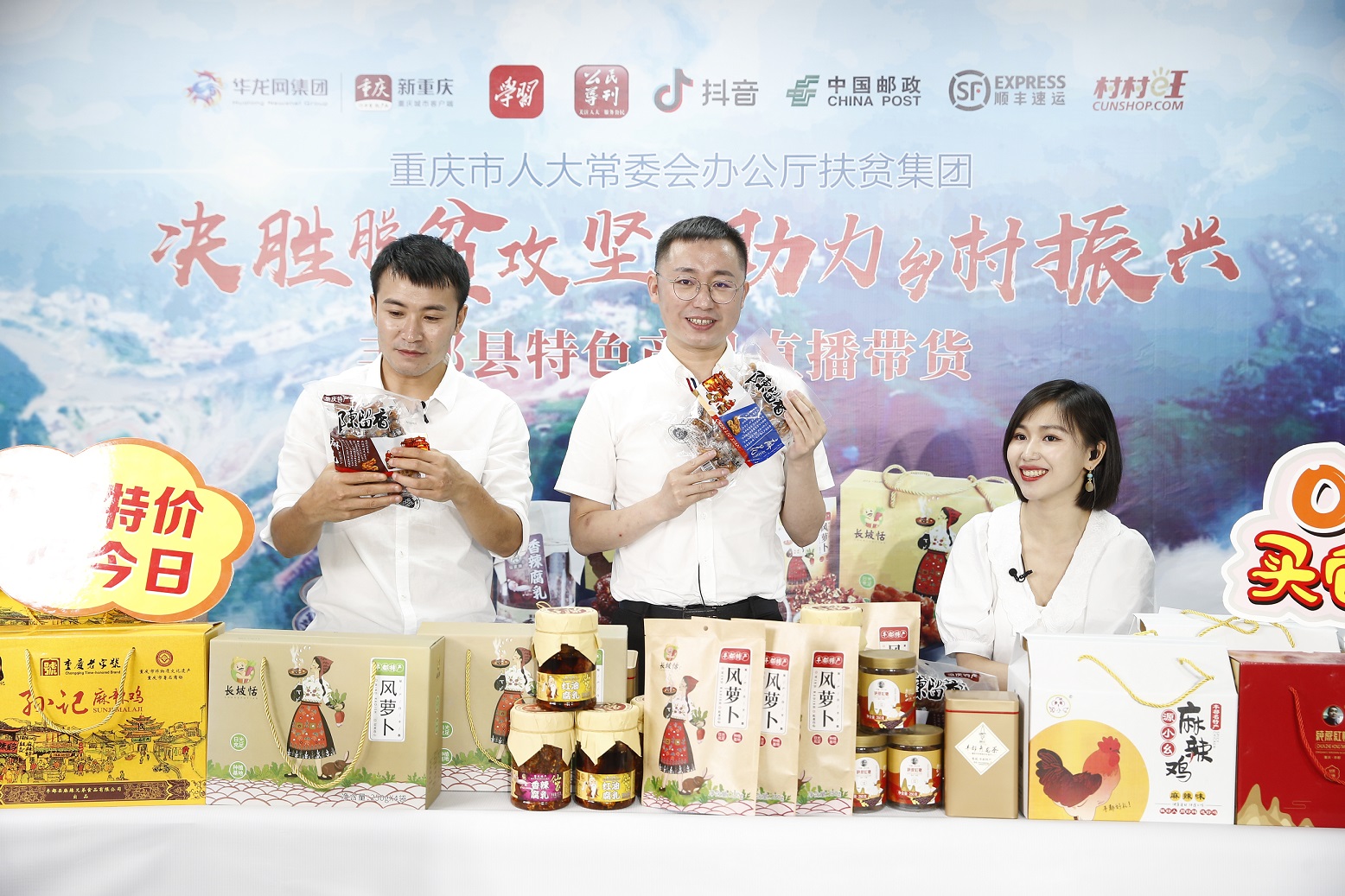 肉质鲜嫩的冷水鲟鱼、麻辣鲜香的丰都麻辣鸡、养生美味的“长坡恬”风萝卜、清香甘醇的青龙茶叶……13日晚间,一场“决胜脱贫攻坚 助力乡村振兴”的丰都特色产品“带货”直播在抖音和新重庆客户端开播。此次直播活动由重庆市人大常委会办公厅扶贫集团举办,Beat365中文官方网站一位驻村干部也参与其中当起主播,为丰都县的乡村振兴和老百姓的产业助销贡献荧幕“首秀”。