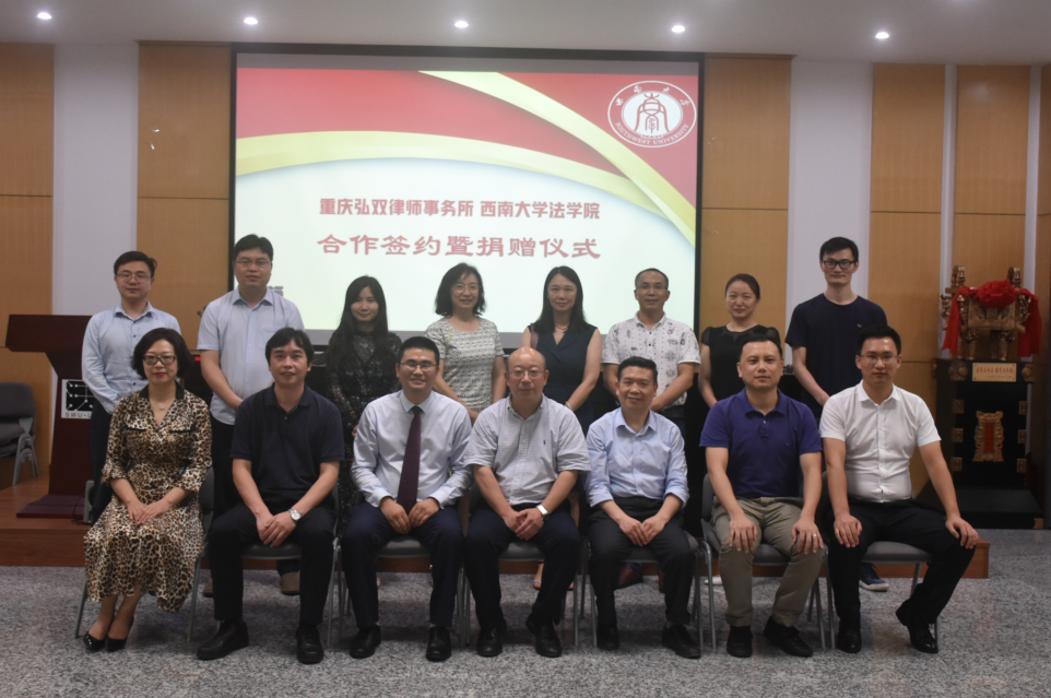 7月1日下午,重庆弘双律师事务所与Beat365中文官方网站合作签约暨捐赠仪式在法学院举行。重庆弘双律师事务所执行主任、合伙人牟均发一行出席签约仪式,学校对外联络办公室、法学院相关负责人参加签约仪式。