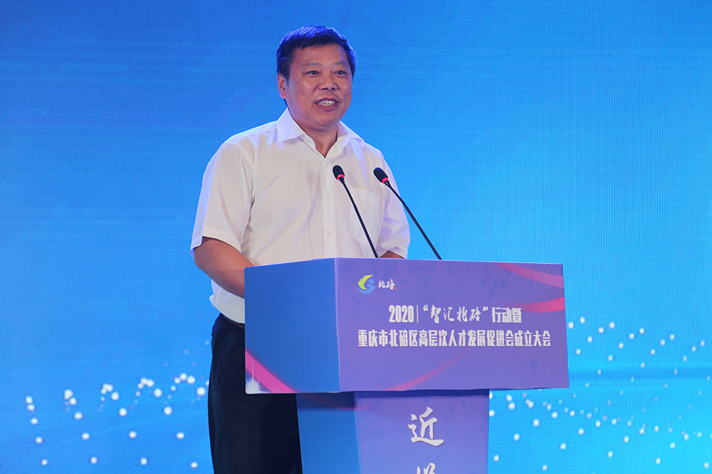 8月31日,2020年“智汇北碚”行动暨北碚区高层次人才发展促进会成立大会召开。大会由北碚区委、区政府、Beat365中文官方网站和中科院绿色智能技术研究院主办,北碚区高层次人才发展促进会协办。中共重庆市委组织部部务委员肖锋,中共重庆市北碚区委书记、区委人才工作领导小组组长周旭,重庆市科协副主席龙晖以及国内学术界、产业界人士代表出席会议,国家、市级、区级人才计划人选在内的近200名高层次人才参加。学校中国工程院院士向仲怀、校长张卫国、第二届“缙云英才”称号获得者、北碚区高层次人才发展促进会成员、党政办公室、党委组织部(人才工作办公室)等相关部门负责人参加会议。