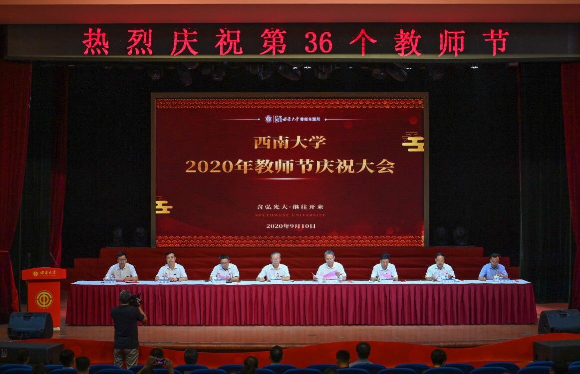 杏坛耕耘,薪火相传。9月10日上午,学校在光大礼堂举行2020年“尊师主题月”系列活动之教师节庆祝大会。大会分为“师之榜样”“师之初心”“师之传承”三个篇章。学校党委副书记安春元,党委副书记、纪委书记李华,副校长陈时见、靳玉乐、王进军、周光明、赵国华,党委常委、党委宣传部、党委网络工作部部长李荣华,各二级单位主要负责人,受表彰教师,荣休教师、新进教师代表参加大会。大会由陈时见主持。
