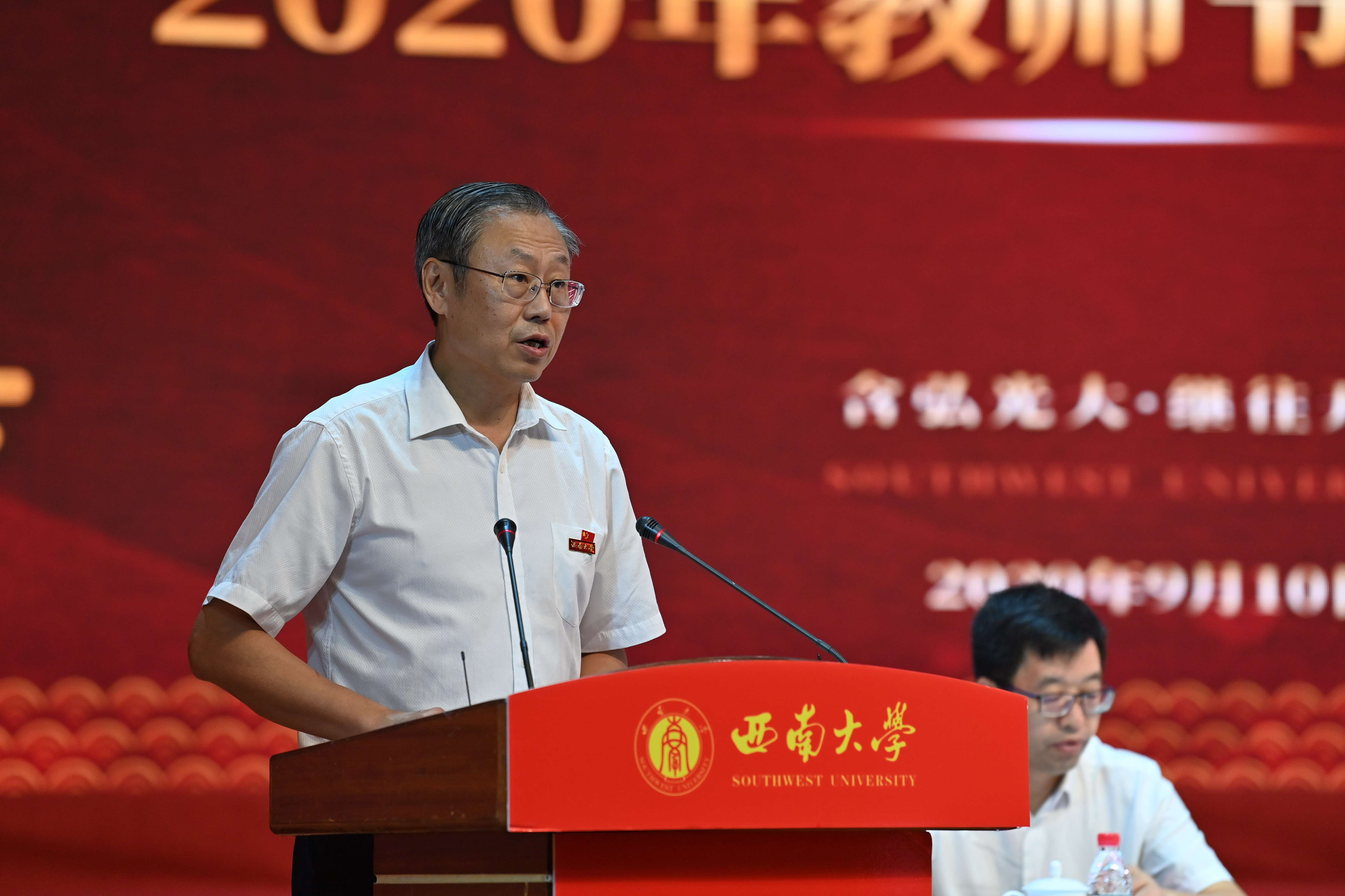 安春元发表讲话,向一直以来坚守初心、默默付出的西大教职工致以节日的祝福和衷心的感谢。同时,对新进教师的到来表示诚挚欢迎。他强调,教师要始终坚守教育报国初心,担当筑梦育人使命,以时不我待、只争朝夕的精神,努力书写好教育奋进之笔。安春元对广大教师提出三点希望:一是做崇德修身、立德树人的传道良师。二是做潜心教学、匠心钻研的授业名师。有扎实的知识功底、勤勉的教学态度、科学的教学方法,把最大的精力和时间投入教书育人。三是做服务社会、心忧天下的济世大师。