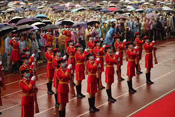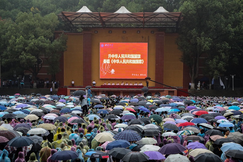 樟林迎秋,天高气清,9月21日晨,学校本部2020级全体新生齐聚第一运动场,共襄开学典礼,开启崭新求学征程。伴随体育学院负责人“以奥运冠军赵帅为基准,向中看齐”的口令,细雨中的2020级新生及各学院党政领导迅速整队,正式拉开这场迎接礼的序幕。