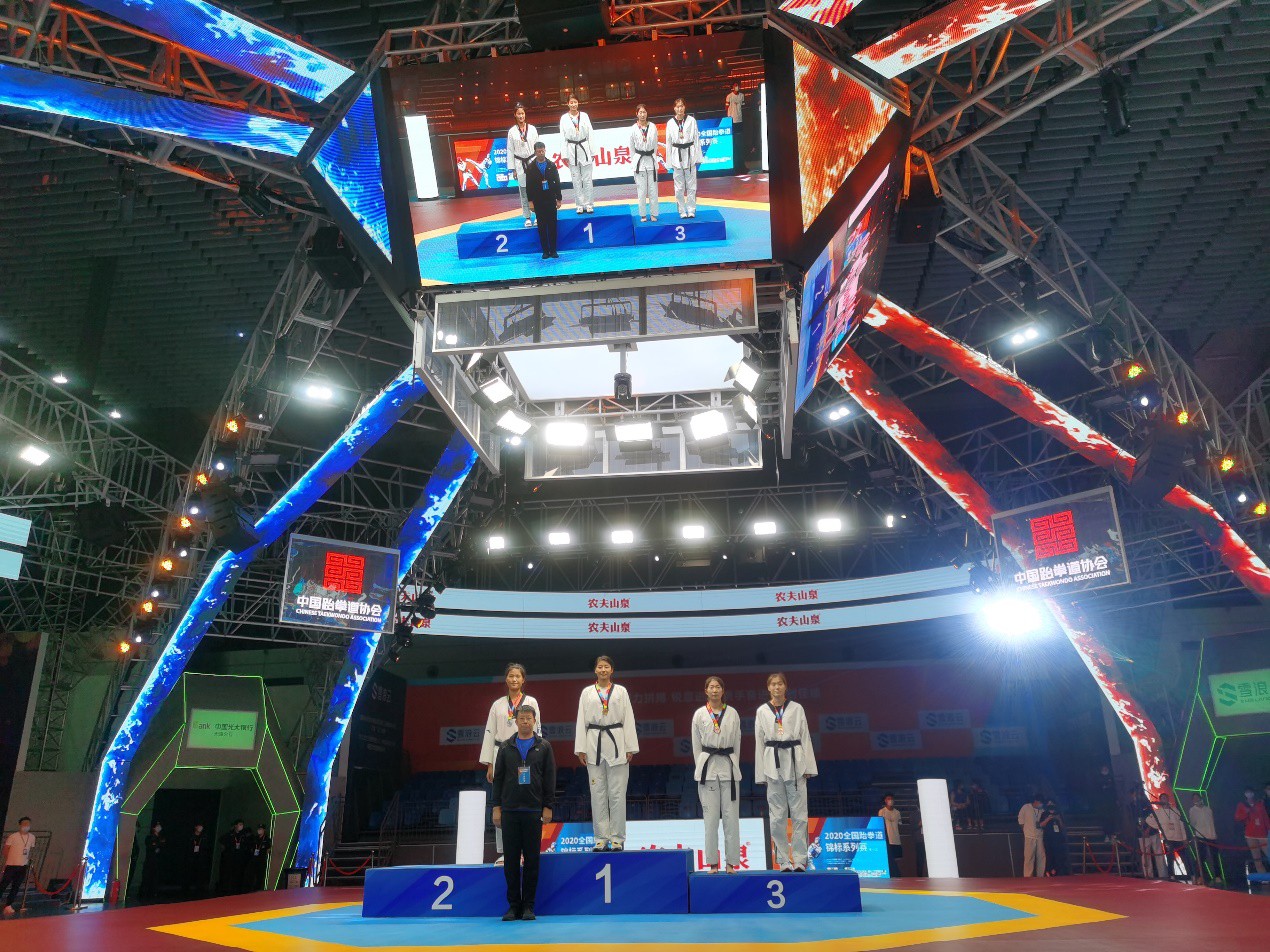 2020年全国跆拳道锦标系列赛第一站,25日在无锡太湖国际博览中心落幕,学校跆拳道队员在比赛中获得三金一银一铜优异成绩。