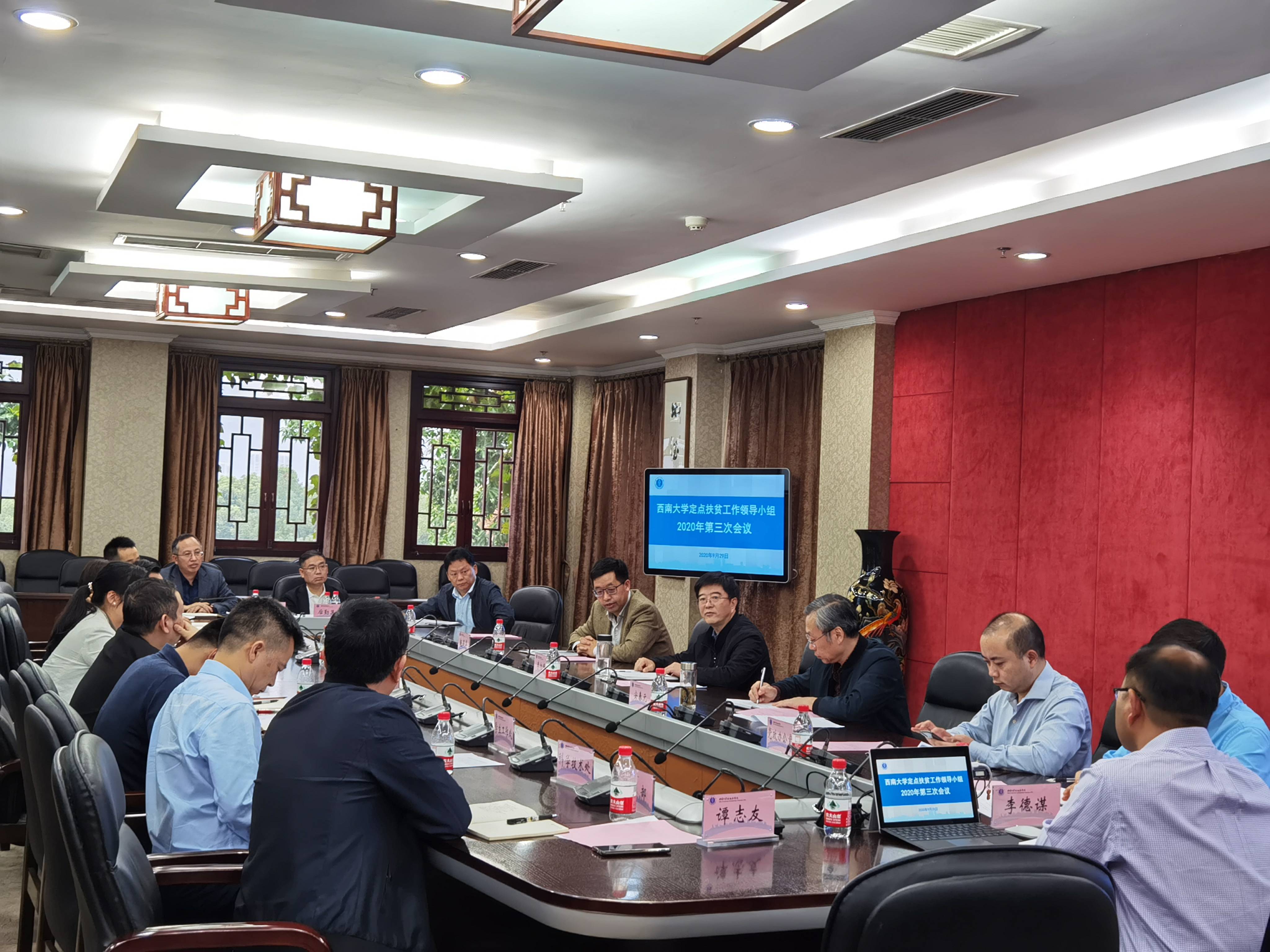 为进一步推进定点扶贫工作,9月29日,学校召开定点扶贫工作领导小组2020年第三次会议。学校党委书记李旭锋、党委副书记安春元、副校长赵国华,定点扶贫工作领导小组成员单位主要负责人和扶贫挂职干部参加会议。会议由副校长、学校定点扶贫工作领导小组副组长赵国华主持。