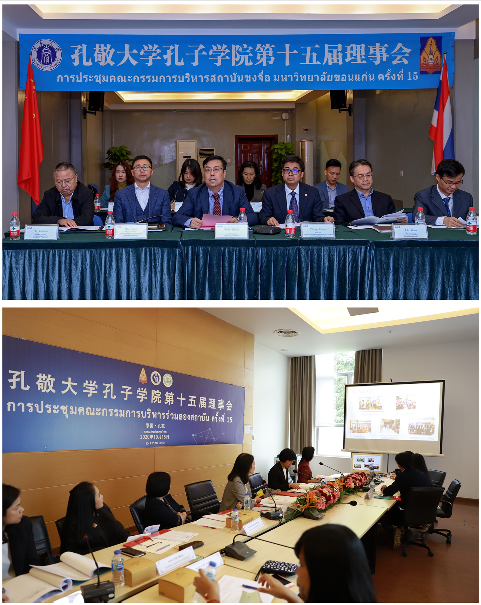 10月15日,学校共建泰国孔敬大学孔子学院第十五届理事会在学校和孔敬大学成功召开。在常态化疫情防控背景下,理事会采取视频会议的形式举行,副校长王进军出席会议并致辞,人力资源部、国际合作与交流处、财务部、文学院、国际学院等单位相关负责人参加。孔敬大学副校长娜瓦拉、校长助理阿查拉婉及其相关单位、学院负责人等参加会议。