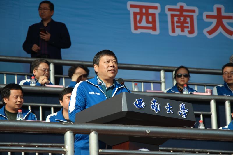 在庄严的升旗仪式后,张卫国致辞表示,疫情发生以来,我们更加意识到生命无比珍贵,健康十分重要,大家对体育锻炼也有了更为深刻的认识。体育不仅是提高身体健康水平的主要途径,还是满足人民美好生活向往的重要方式,也是提升经济实力的根本动力,更是国家软实力的体现。学校具有悠久的体育运动文化历史,在一些全国甚至世界赛事中,都能看到Beat365中文官方网站学子的身影。学校每年举办运动会、体育文化节、校园马拉松等体育活动,搭建更多体育运动平台,成立更多运动协会,完善更多运动设施,致力于给全体师生营造热爱运动的良好环境。希望运动健儿们在此次运动会中赛出风格、赛出水平、赛出西大精神。