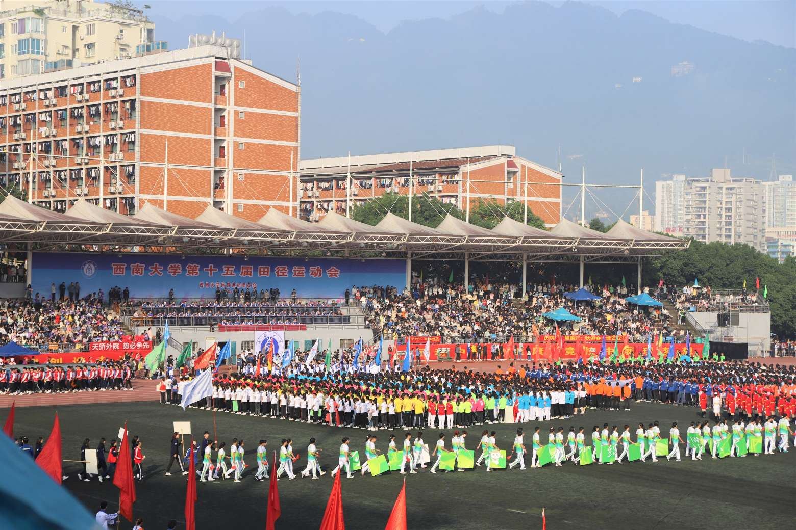 学校田径运动会历来在春季举行,今年由于一场突如其来的新冠肺炎疫情而调整至10月开办。正如校长张卫国在运动会开幕词中所言,“虽然我们失去了春天的花香,但迎来的是秋天的收获!”广大师生热爱体育运动、追求健康体魄的热情依旧高涨,西大人的朝气蓬勃与积极进取正等待在运动场上绽放。