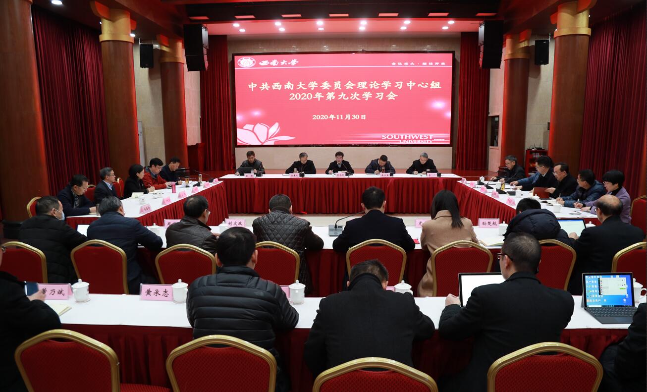 11月30日下午,学校在东方红会议厅召开2020年度第九次党委理论学习中心组集中学习会,围绕“新时代建设教育强国”主题研讨交流。全体在校校领导,学校党委委员、纪委委员,重庆市委教育工委巡听旁听第二工作组同志参会,学校党委书记李旭锋主持会议。