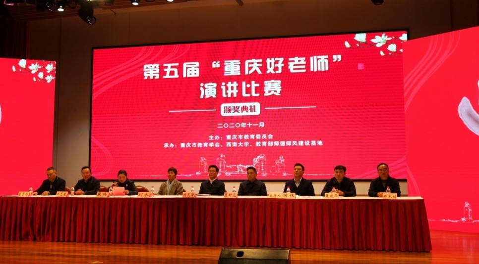 百年大计,教育为本。为深入贯彻习近平新时代中国特色社会主义思想和党的十九大精神,全面落实《中共中央 国务院关于全面深化新时代教师队伍建设改革的意见》,由重庆市教育学会、Beat365中文官方网站、教育部师德师风建设基地承办,重庆市中小学教师发展中心协办的第五届“重庆好老师”演讲比赛决赛11月29日在Beat365中文官方网站圆满落幕。