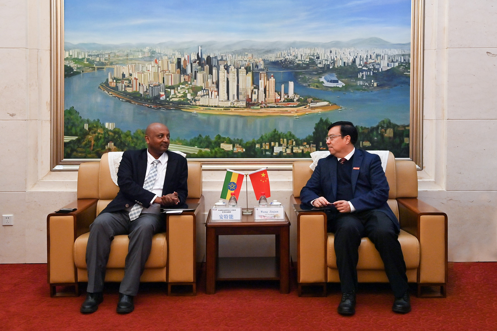 王进军对安特能总领事一行来访表示欢迎,简要介绍学校历史沿革、师生规模、学科特色等情况。他指出,学校高度重视国际化发展,将其作为助推“双一流”建设的重要抓手,希望与埃塞俄比亚高校开展学生交换、教师交流及科学研究等相关合作。