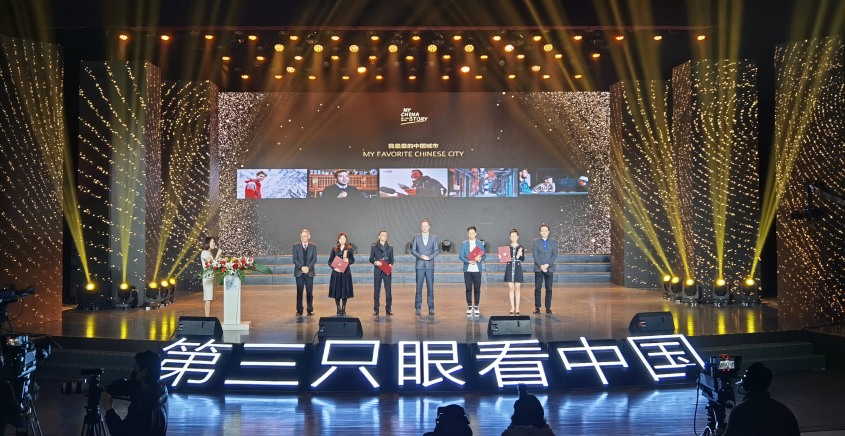 12月17日,中国外文局主办的“2020第三只眼看中国”国际短视频大赛颁奖典礼在烟台广播电视台演播室进行。新闻传媒学院陈曦同学制片的《辣椒意中人》凭借独特的视角和新奇的视点,通过辣椒审视不一样的重庆,荣获“我最爱的中国城市”单元优秀奖(无等级,五个优秀之一)。