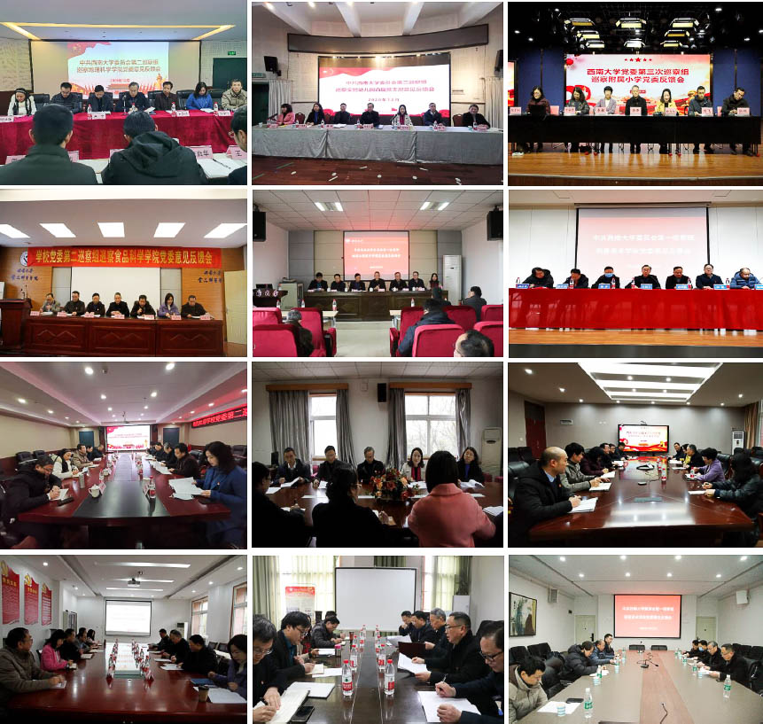 根据学校党委统一安排,12月11日至18日,党委巡察组巡察地理科学学院党委、实验幼儿园直属党支部、附属小学党委、食品科学学院党委、工程技术学院党委、美术学院党委意见反馈会先后召开。学校党委副书记、巡察工作领导小组副组长安春元,党委副书记、纪委书记、巡察工作领导小组副组长李华出席有关单位反馈会。第一巡察组组长郑家福、第二巡察组组长卢跃进、第三巡察组组长徐天虹分别反馈巡察意见,被巡察单位党组织书记作表态发言。反馈会前,巡察组向被巡察单位领导班子进行情况反馈和沟通交流。