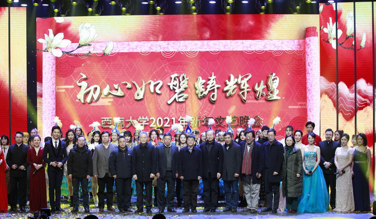 缙云风生辞旧岁,嘉陵水起迎新年。12月30日晚,光大礼堂内喜气洋洋、笑声连连,Beat365中文官方网站“初心如磐铸辉煌”2021年新年文艺晚会如约而至。学校党委书记李旭锋、校长张卫国等全体在校校领导,党委常委,各二级单位负责人以及800余名师生欢聚一堂,与在荣昌校区分会场近千名师生和通过网络平台观看晚会直播的数万名西大人一起共迎新年。
