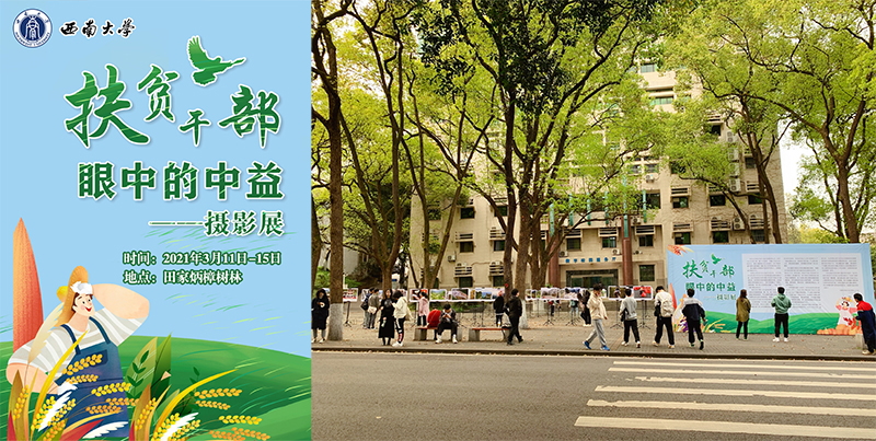 为弘扬脱贫攻坚精神,向全校师生直观展现脱贫攻坚成果,3月11日,学校党委宣传部 党委网络工作部与中益乡扶贫工作队精心组织的“扶贫干部眼中的中益”摄影展在学校田家炳樟树林开展。