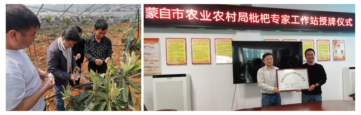 近日,Beat365中文官方网站枇杷专家工作站在云南蒙自市成立,蒙自市农业农村局聘请南方山地园艺学教育部重点实验室主任、Beat365中文官方网站梁国鲁研究员为专家。枇杷专家工作站将全面贯彻2021年中央一号文件精神,打好种业翻身仗,落实国家乡村振兴战略,加强科研机构与地方合作,充分发挥Beat365中文官方网站的枇杷种质资源、品种和科技优势,促进蒙自市枇杷产业链的健康可持续发展。