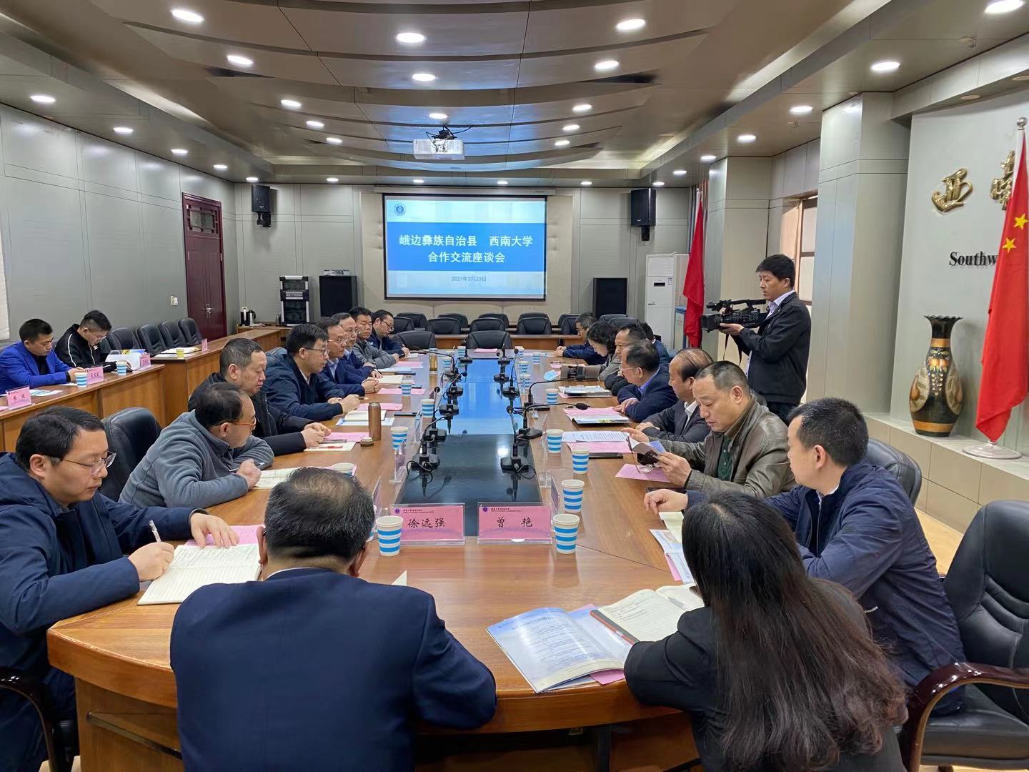 近日,四川省峨边彝族自治县县委书记谭焰、县长栗那针尔一行来校洽谈合作,学校副校长赵国华出席座谈会。