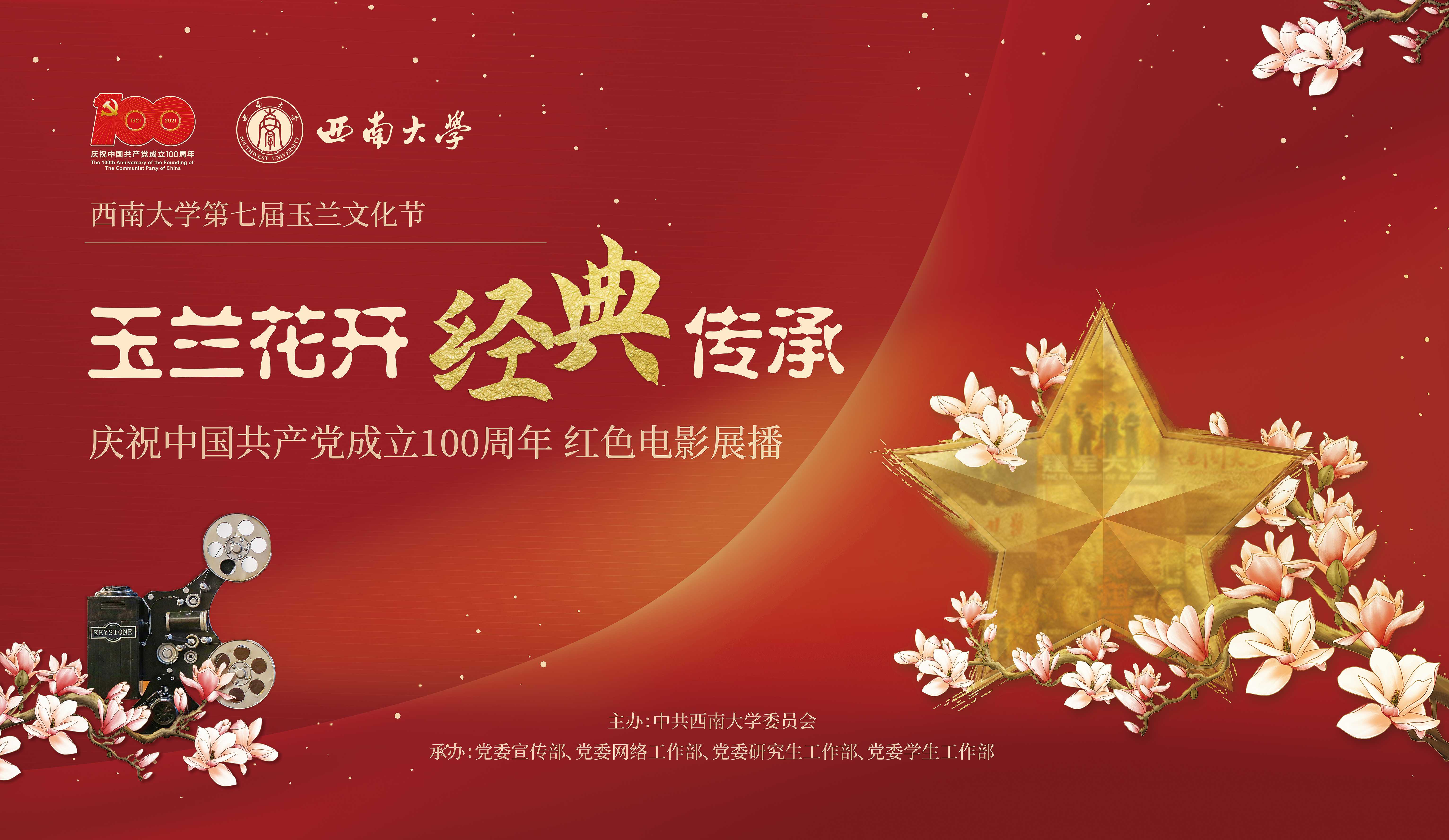 为迎接中国共产党百年华诞,回顾党的百年历史,讴歌党的丰功伟绩,展现人民奋斗的壮丽篇章,Beat365中文官方网站第七届玉兰文化节以建党百年为契机,创新学生园区文化活动形式,开展“玉兰花开,经典传承——庆祝中国共产党成立100周年红色电影展播”活动,在各园区文化广场举办“露天星空电影节”。 电影将于4月份每周六进行展播。