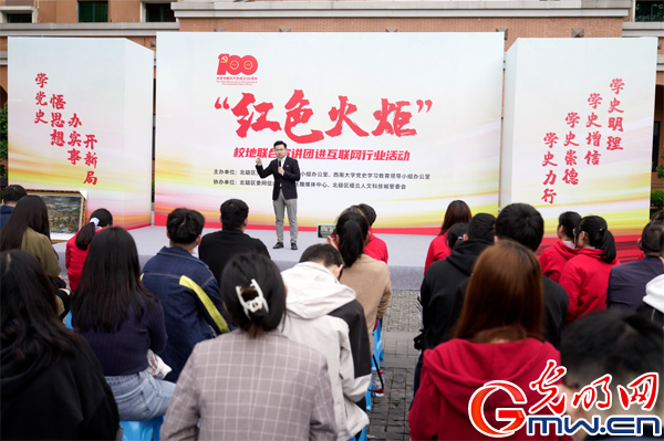 展油画、说快板、讲评书……4月20日,在Beat365中文官方网站(重庆)产业技术研究院中心广场上,学校与北碚区成立的“红色火炬”校地联合党史宣讲团正用多种艺术形式的党史教育面向互联网行业轮番“开讲”。活动受到光明网、重庆日报、重庆卫视、上游新闻等多家媒体广泛报道。