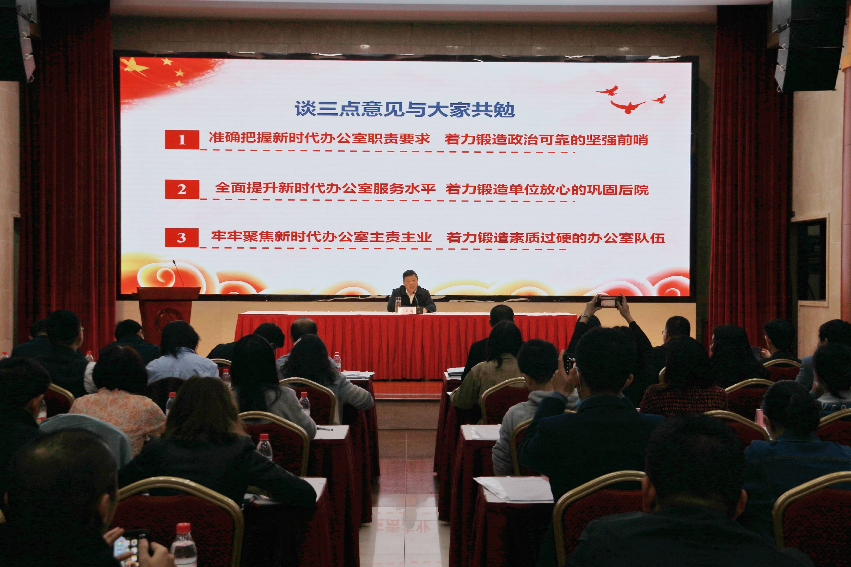 黄杰以“办公室工作应知应会实务及要求”为题对办公室主任进行了业务培训。