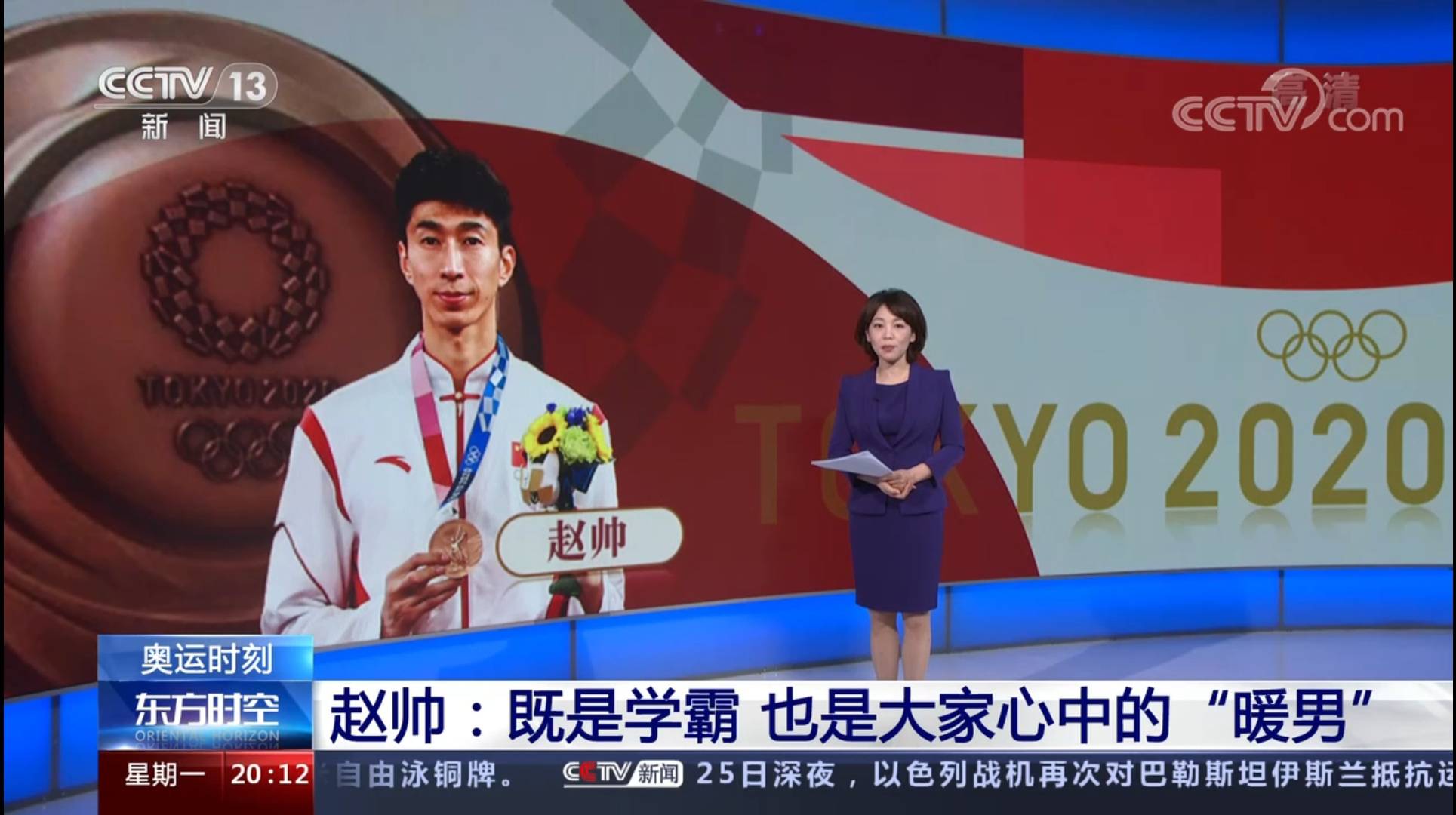 北京时间7月26日下午,CCTV新闻频道“新闻直播间”“东方时空”“24小时”等栏目对学校体育学院2020级博士研究生赵帅进行了专题报道,称赞他既是学霸,也是大家心中的“暖男”。