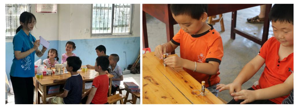 在科普体验环节,志愿者向同学们呈现了六项生动活泼的科普实验:隔空点灯、纸杯飞行器、简易电动机、电磁屏蔽、穿墙而过、纸片载水。通过“生活实例+理论讲解+动手制作”的方式,形象地向同学们展现了物理学的魅力。教室里传出阵阵笑声和掌声,小朋友们听讲时渴望的眼神和动手操作时专注的神情,就像为科学种子的生根发芽带来了阳光雨露。
