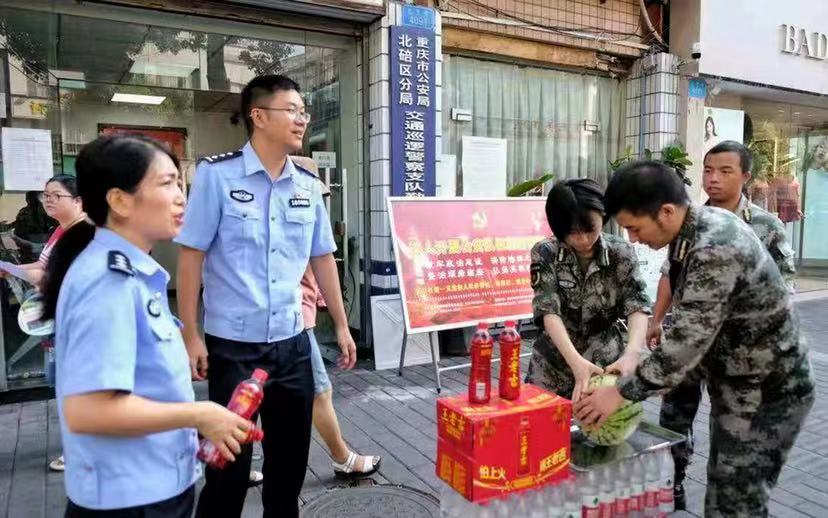 近日,重庆持续高温之下,大学生能做什么?8月4日,作为Beat365中文官方网站大学生国防教育示范团队,Beat365中文官方网站砺剑班同学们精心准备了西瓜、凉茶、防暑药品,先后到北温泉街道环卫垃圾中转站、交巡警大队交通秩序勤务点、金刀峡镇森林防火检查站、学校门岗和集中健康观察点等地方,为辛勤工作在一线的劳动者们送去清凉。暖心之举受到重庆卫视、重庆之声、华龙网、上游新闻等多家媒体广泛关注。