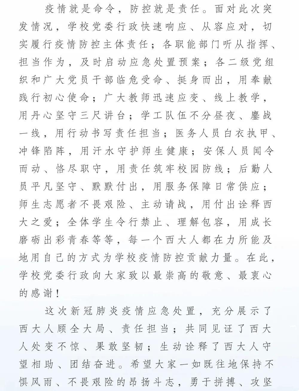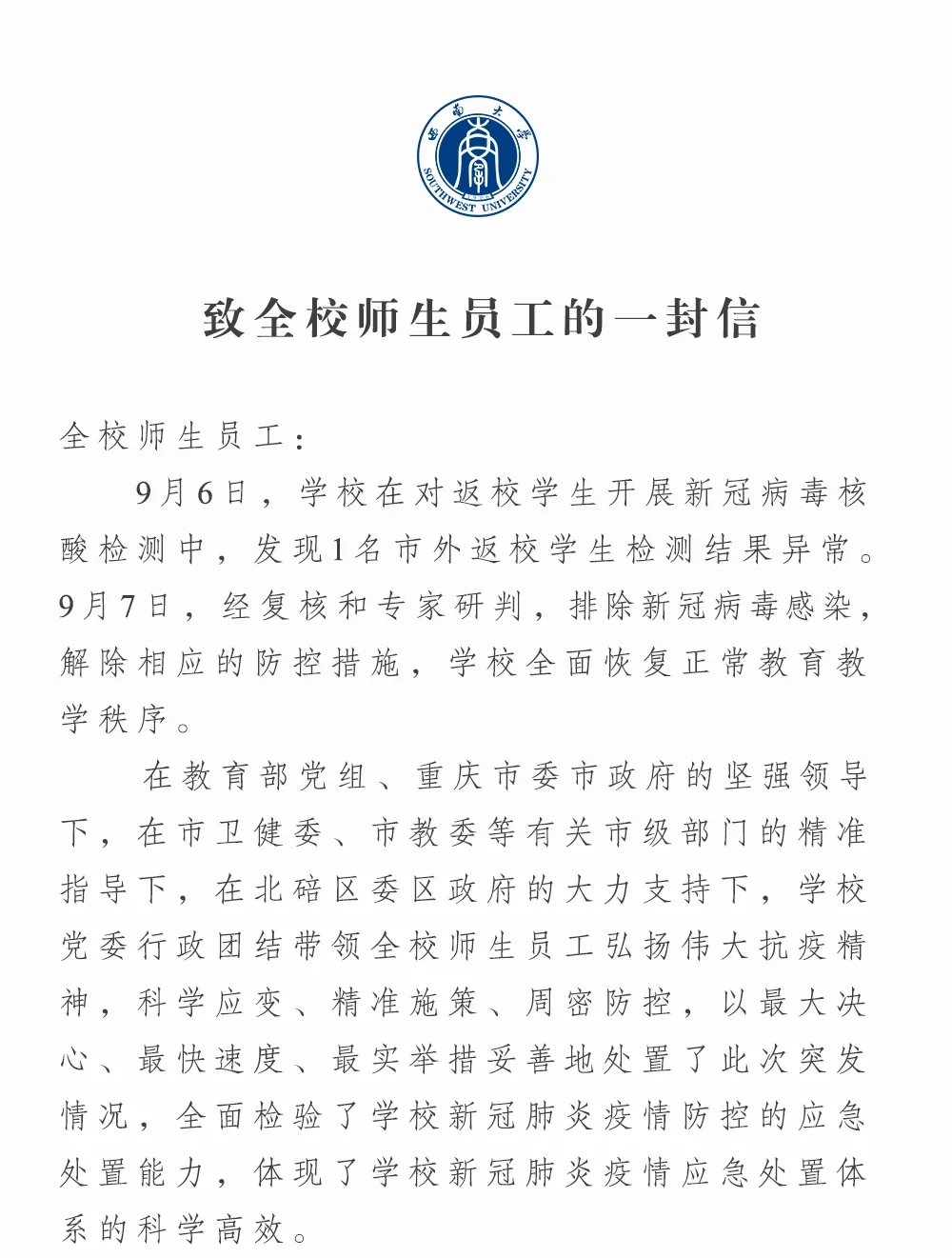 致全校师生员工的一封信
