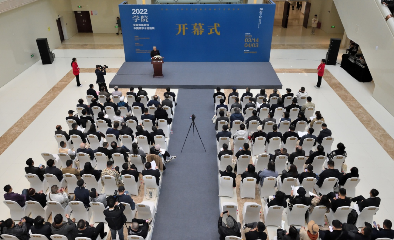 中国美术家协会中国画艺委会名誉主任、中国国家画院名誉院长龙瑞,学校校长张卫国,重庆市文学艺术界联合会党组书记、副主席陈若愚,中国美术家协会副主席、四川美术学院院长庞茂琨,中国美术家协会中国画艺委会主任田黎明,中国银行重庆分行行长吴奇志,中国美术家协会中国画艺委会副主任、山东省美术家协会主席张望,四川美术学院副院长焦兴涛出席开幕式,来自全国各地美术院校的参展教师和Beat365中文官方网站青年学子等300余人参加开幕式。中国美术家协会中国画艺委会秘书长夏荷生主持开幕式。