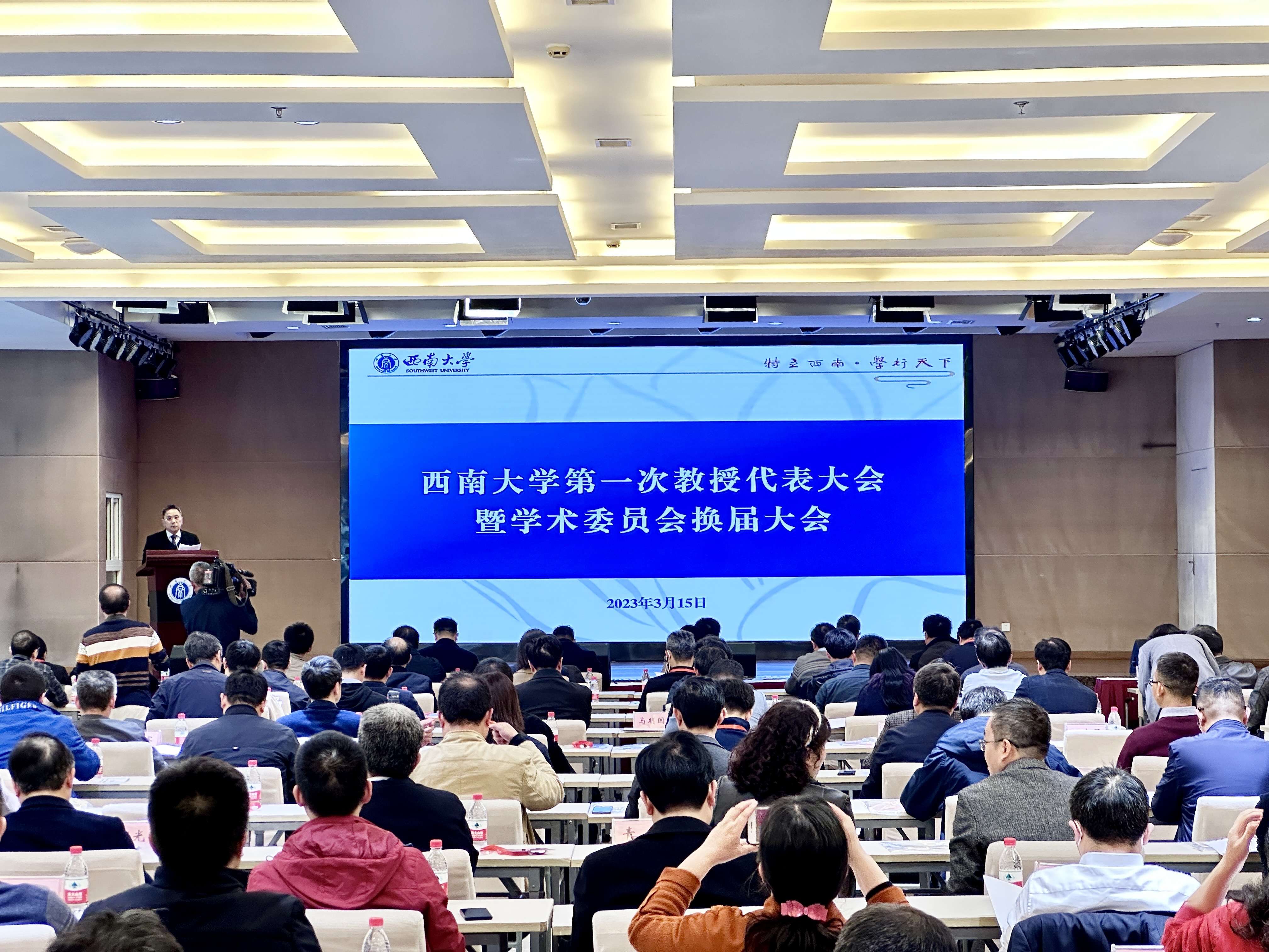 3月15日,学校第一次教授代表大会暨学术委员会换届大会在国际学院报告厅召开。全体在校校领导、全校教授代表、第四届学术委员会委员、各学院(部、所、中心)党政主要负责人和有关职能部门主要负责人出席会议。会议由副校长、第四届学术委员会副主任、秘书长陈时见主持。