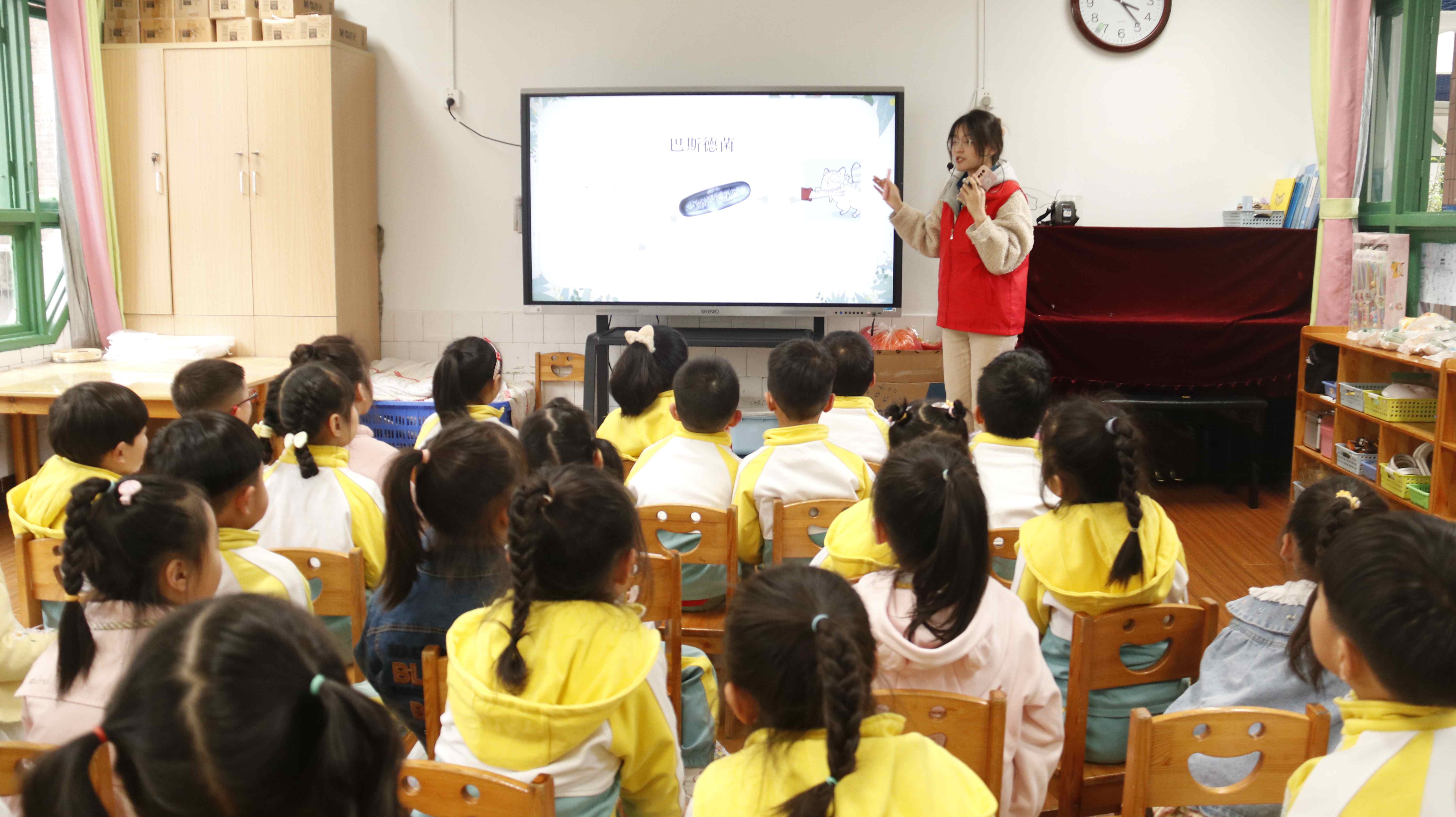 “鸵鸟为什么不会飞?”“狗狗为什么喜欢摇尾巴?”“为什么小鸭子走路摇摇晃晃?”活动中,志愿者们围绕“保护动物”“保护自己”等内容,通过视频科普、知识讲解、趣味问答、模仿游戏等形式,给孩子们上了一堂别开生面的“动物课”。小朋友们对讲解内容充满好奇,踊跃回答提问,现场气氛欢快热烈。