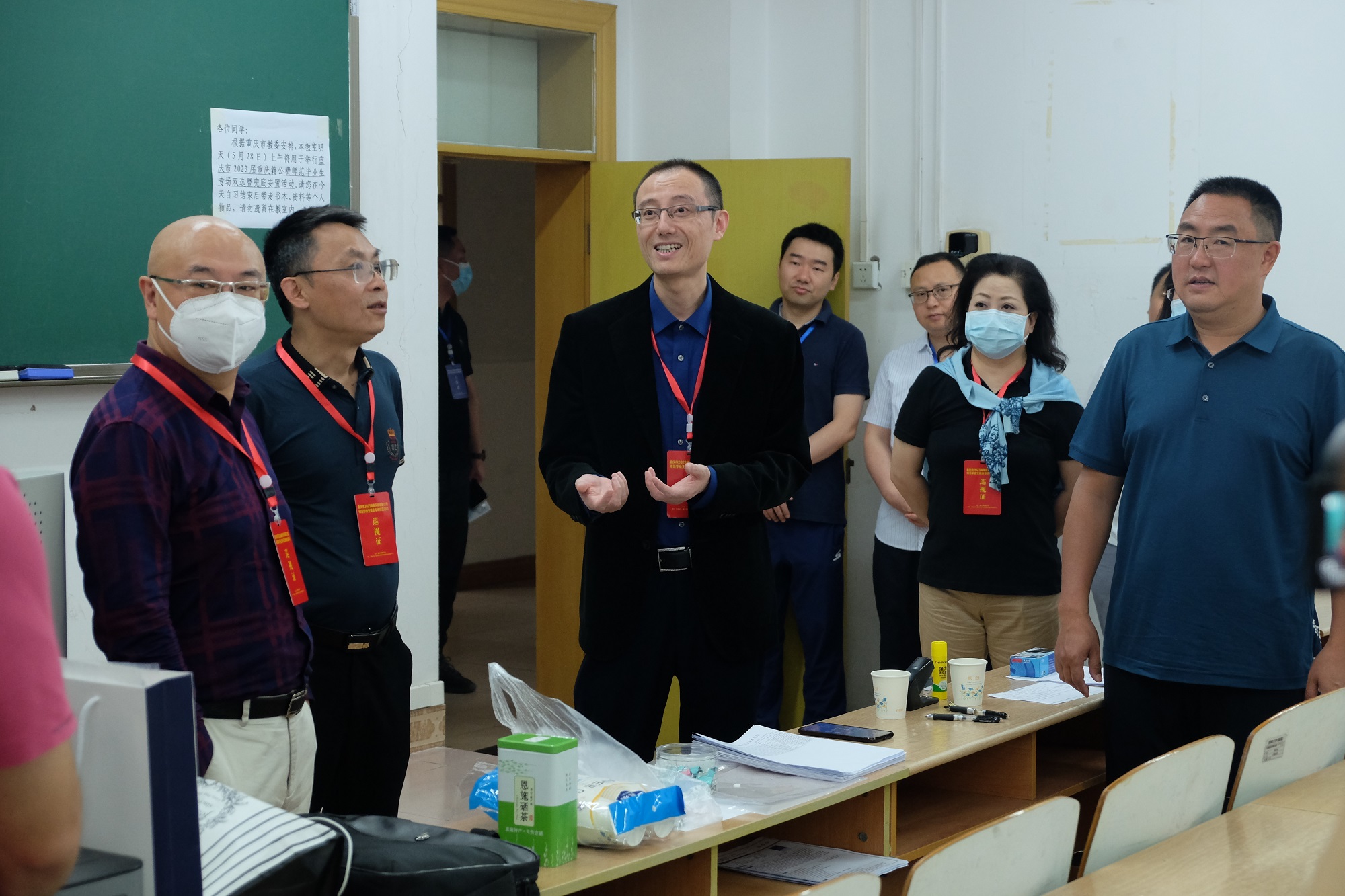 在候考室,黄杰看望了前来应聘的毕业生。他表示,教师是立教之本、兴教之源,是国家实施科教兴国战略的重要力量,人民教师无上光荣,希望同学们牢记习近平总书记号召,既精通专业知识、做好“经师”,又涵养德行、成为“人师”,努力做精于“传道授业解惑”的“经师”和“人师”的统一者,为培养德智体美劳全面发展的社会主义建设者和接班人贡献力量。同时,黄杰祝愿同学们心想事成,每个人都能找到自己满意的工作和岗位。