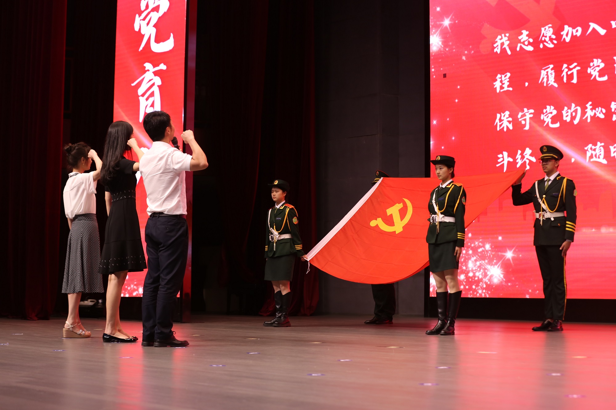 三位新党员进行入党宣誓,由新发展党员代表杨芸屹领誓,全体党员举起右拳,高声宣读、重温入党誓词。新党员杜瑞玥表示,将持续在工作中锤炼党性修养、坚定理想信念,以实际行动向老党员学习,用工作成效向老党员致敬。
