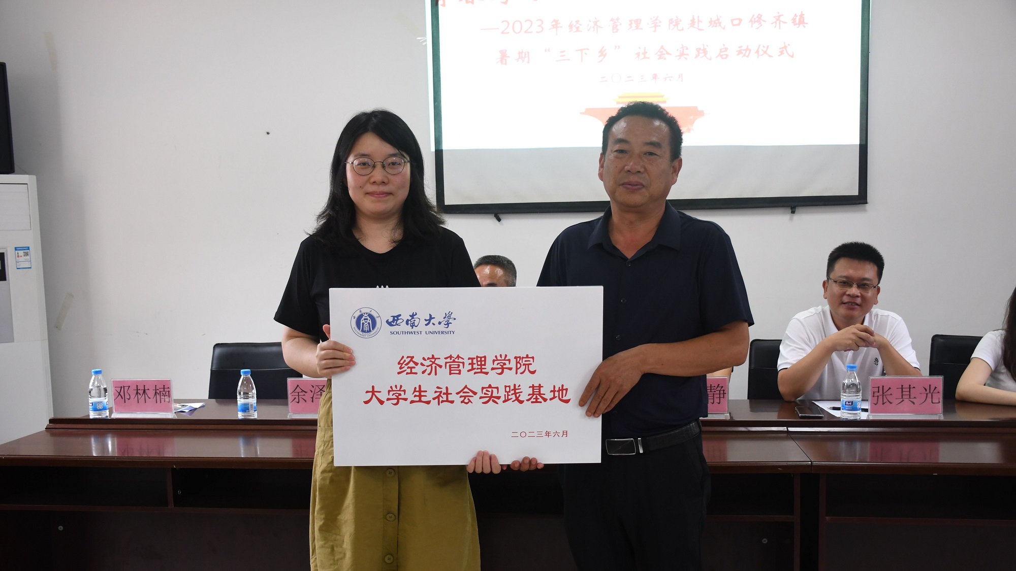 随后,学院与东河村举行大学生社会实践基地授牌仪式,学院将进一步发挥大学生志愿者力量,增强对东河村的帮扶支持力度,同时也为历练学生社会实践能力提供基层平台。