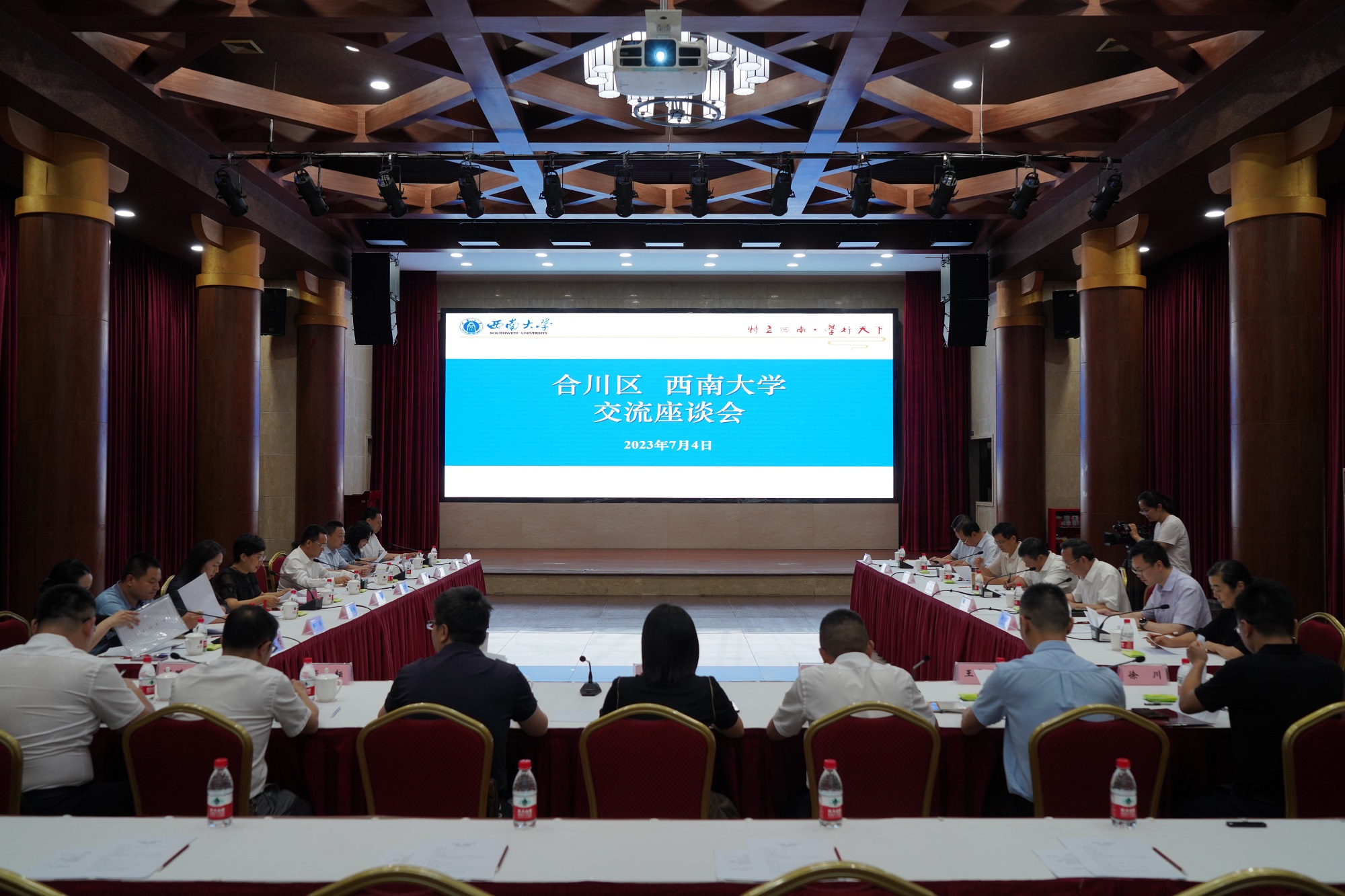 学校党政办公室、社会科学处、国内合作处、实验室建设与设备管理处、培训与基础教育管理处、继续教育学院、Beat365中文官方网站附属中学,合川区有关部门负责人参加了交流座谈会。