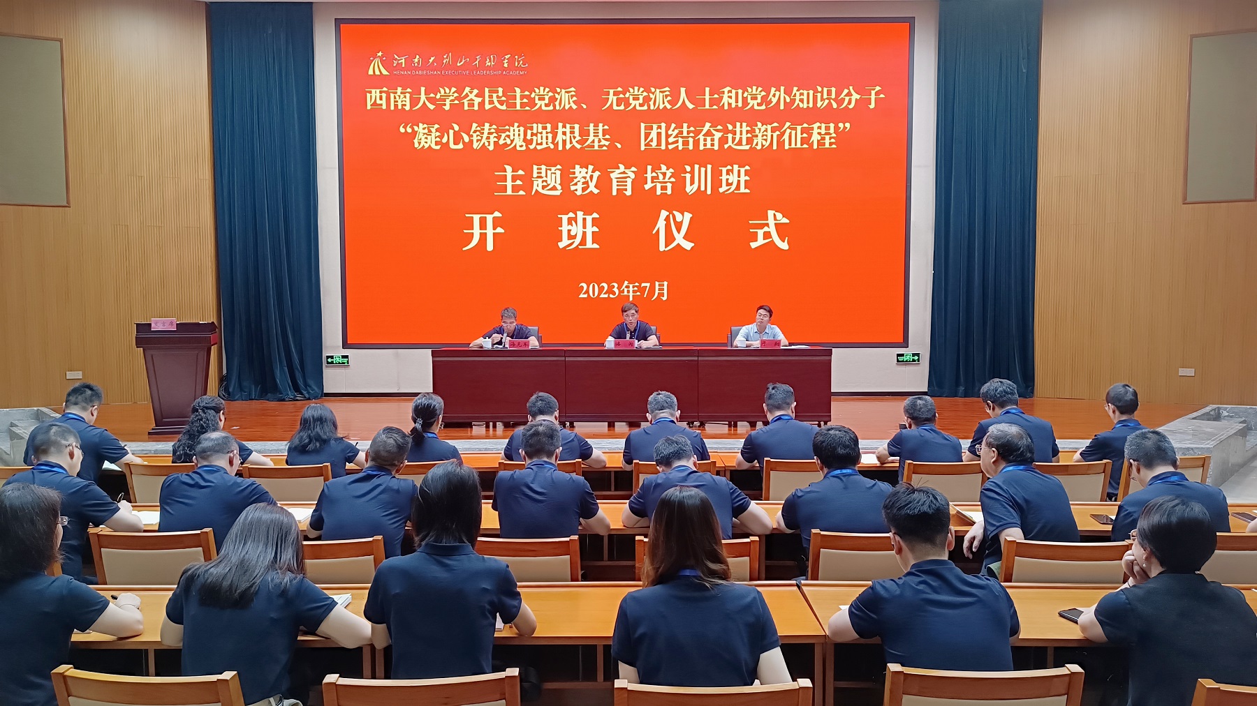 为深入学习贯彻习近平新时代中国特色社会主义思想和党的二十大精神,扎实开展主题教育,巩固团结奋斗的共同思想政治基础,学校党委副书记潘洵带队赴河南大别山干部学院开展各民主党派、无党派人士和党外知识分子“凝心铸魂强根基、团结奋进新征程”主题教育培训。