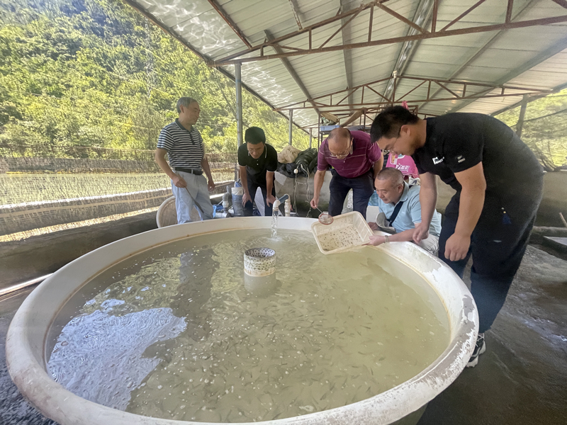 水产专家教授们在城口县蓼子乡与该乡党政领导、冷水鱼养殖企业负责人开展座谈,就冷水鱼产业发展进行深入的交流研讨。与会专家在听取蓼子乡党委书记刘关林、乡长王生贵及养殖业主周兆轩关于冷水鱼养殖项目开展情况、存在问题及今后的发展计划以后,结合蓼子乡资源、地形、气候等实际情况,对该乡冷水鱼产业提出了加强产业规划、推广高位池养殖模式、推进智能化养殖技术运用、加大养殖专业人才培养力度、科学解决好尾水处理等意见建议。