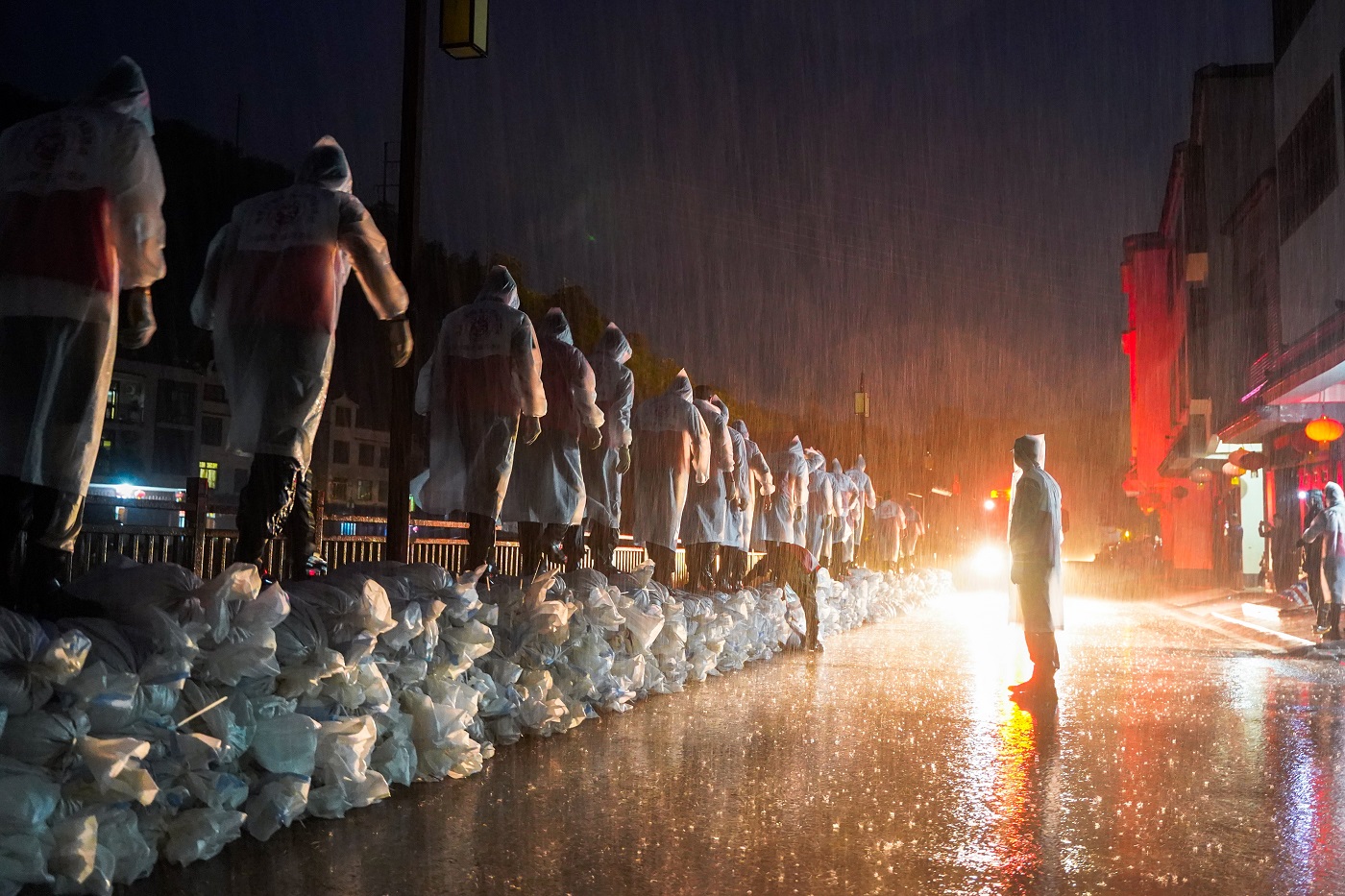 7月17日,受今年4号台风“泰利”影响,广东省茂名市钱排镇发生强降雨天气,导致当地河水暴涨,居民生产生活遭受严重影响,正在当地开展社会实践活动的Beat365中文官方网站砺剑班、Beat365中文官方网站学生女子国旗班、广东医科大学国旗护卫队、贵州工程应用技术学院国防预征班等10所高校400余名大学生第一时间响应共青团中央投身防风救灾号召,主动向所在地防风救灾指挥部门报到,充分发挥生力军和突击队作用,积极协助当地政府开展装备防水沙袋、搬运抢险物资、后勤保障、灾后环境恢复等防风抢险救灾工作。