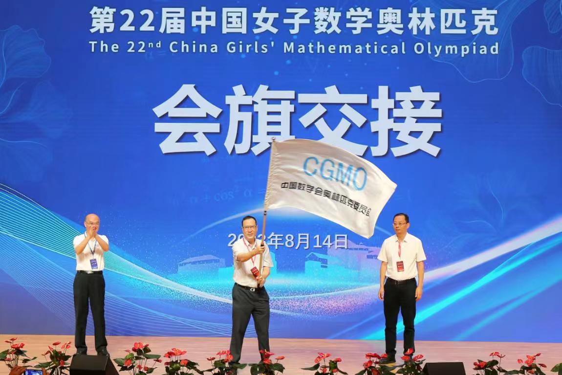 8月14日下午,附属中学党委书记、校长欧健从中国数学会竞赛委员会副主任王长平教授手中接过会旗,向全国发出诚挚邀请:明年8月,附属中学将迎接来自全国各省、自治区、直辖市、特别行政区的青年女子数学英才,一起感受数学之美,探索数学之谜!